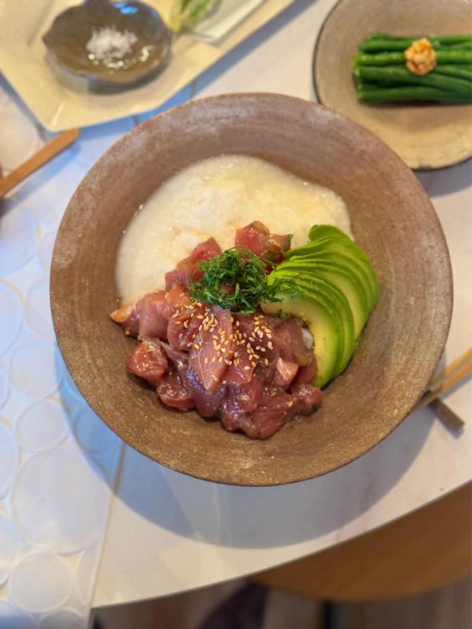 まぐろは切り落としのお買い得だったものを、麺つゆとワサビを混ぜたタレに10分ほど漬けました。