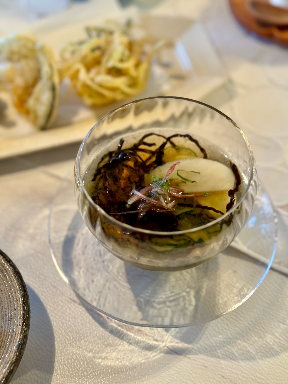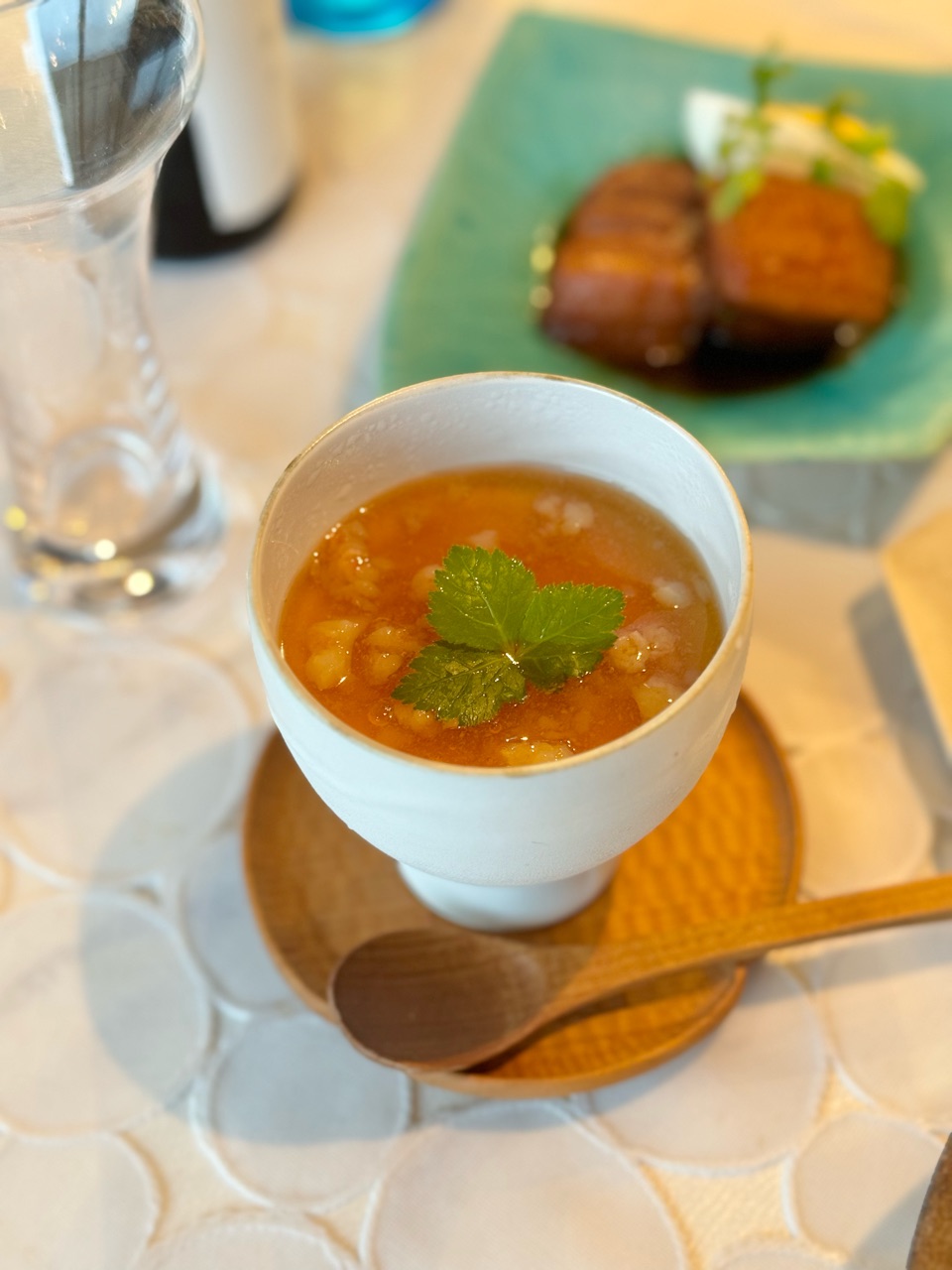かき揚げは、むき海老と自家製の三つ葉とチャービル。