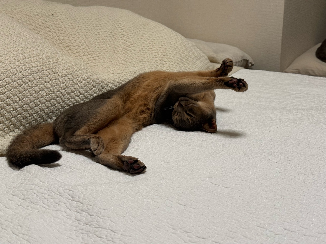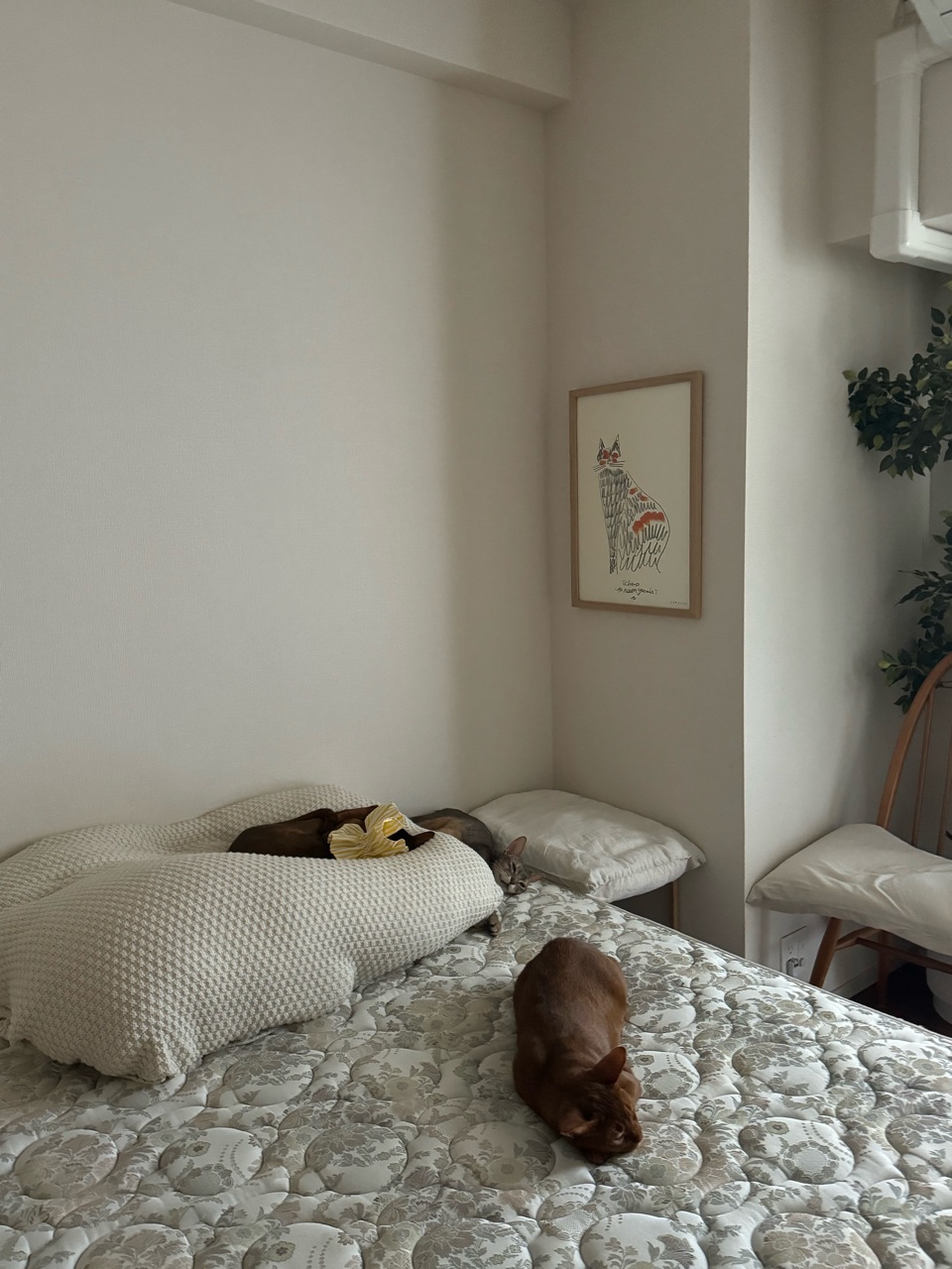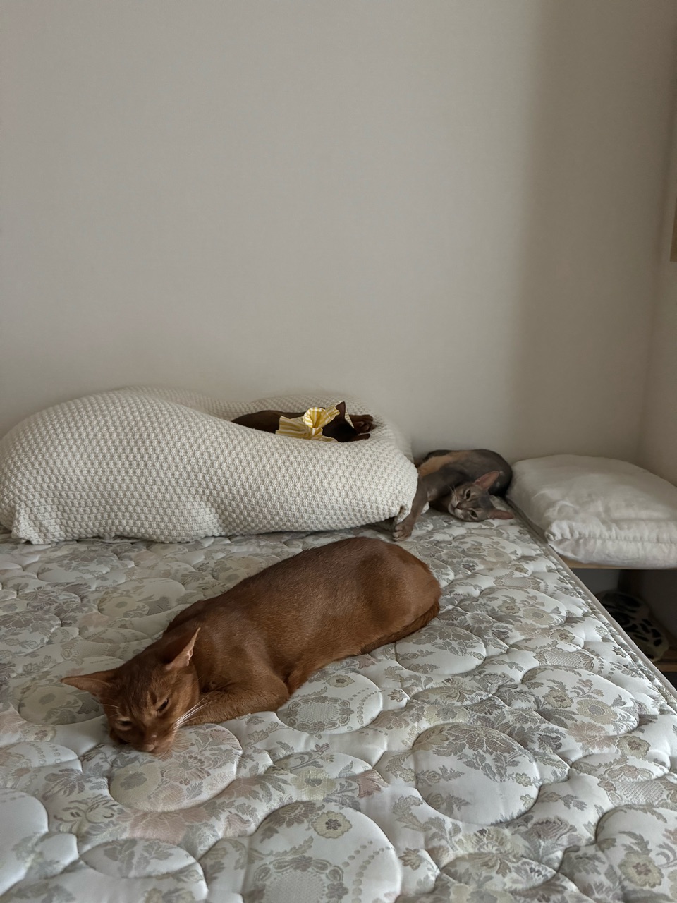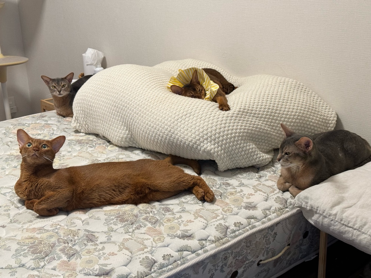 猫たち、エアコンの部屋にいることもあれば、北側の寝室にいることもあります。