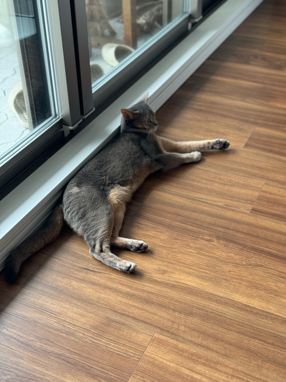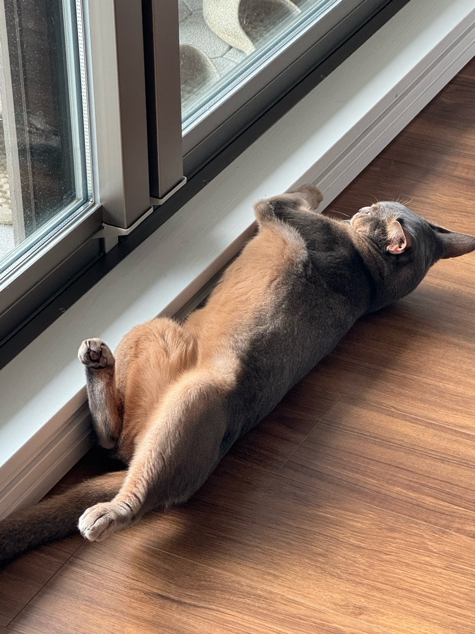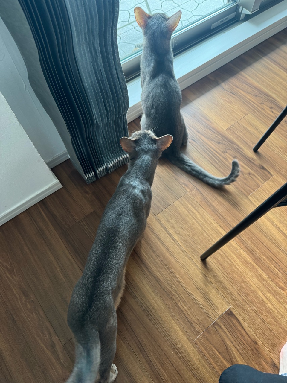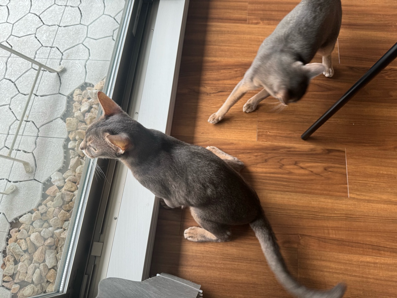 窓の外にやってくるスズメさんを見つけるや、窓際に走ってきた何やらウニャウニャ言ってる?