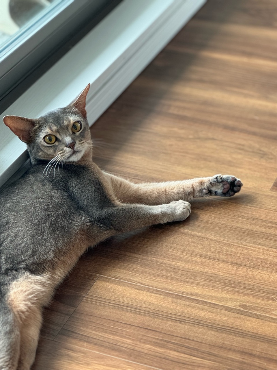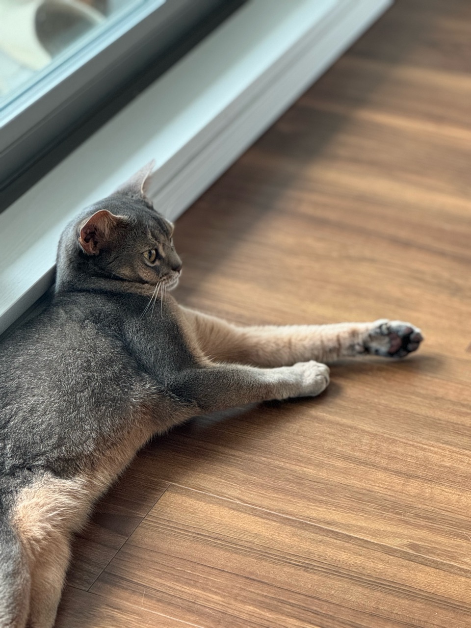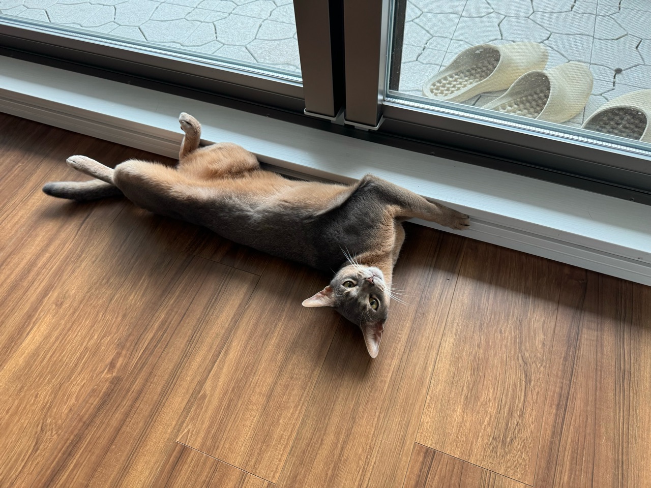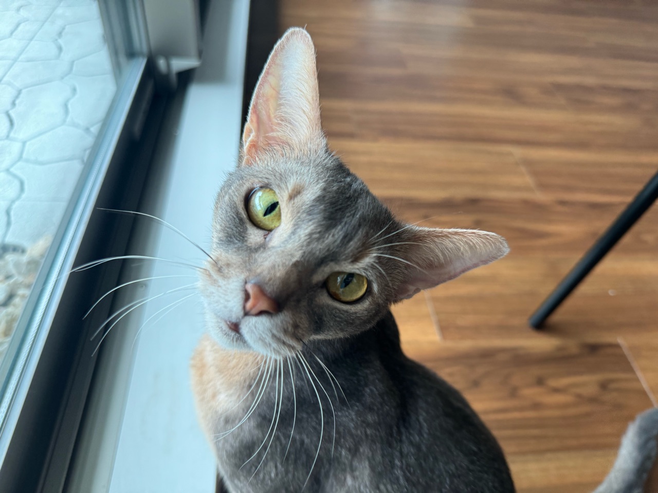 窓の外にやってくるスズメさんを見つけるや、窓際に走ってきた何やらウニャウニャ言ってる?