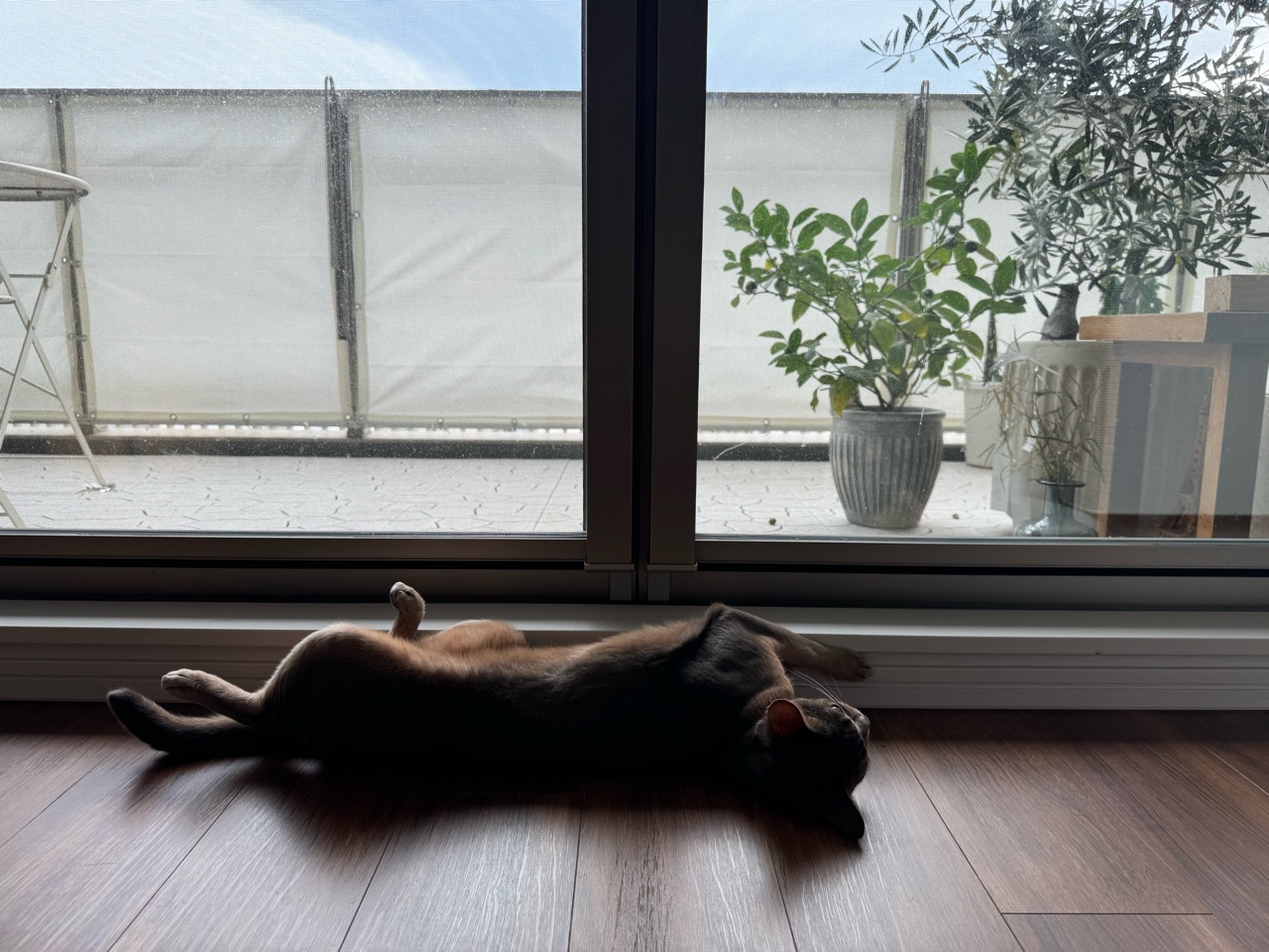 お兄ちゃんにベストスポットを取られて、わか坊はあちこちウロウロしてる(๑¯◡¯๑)