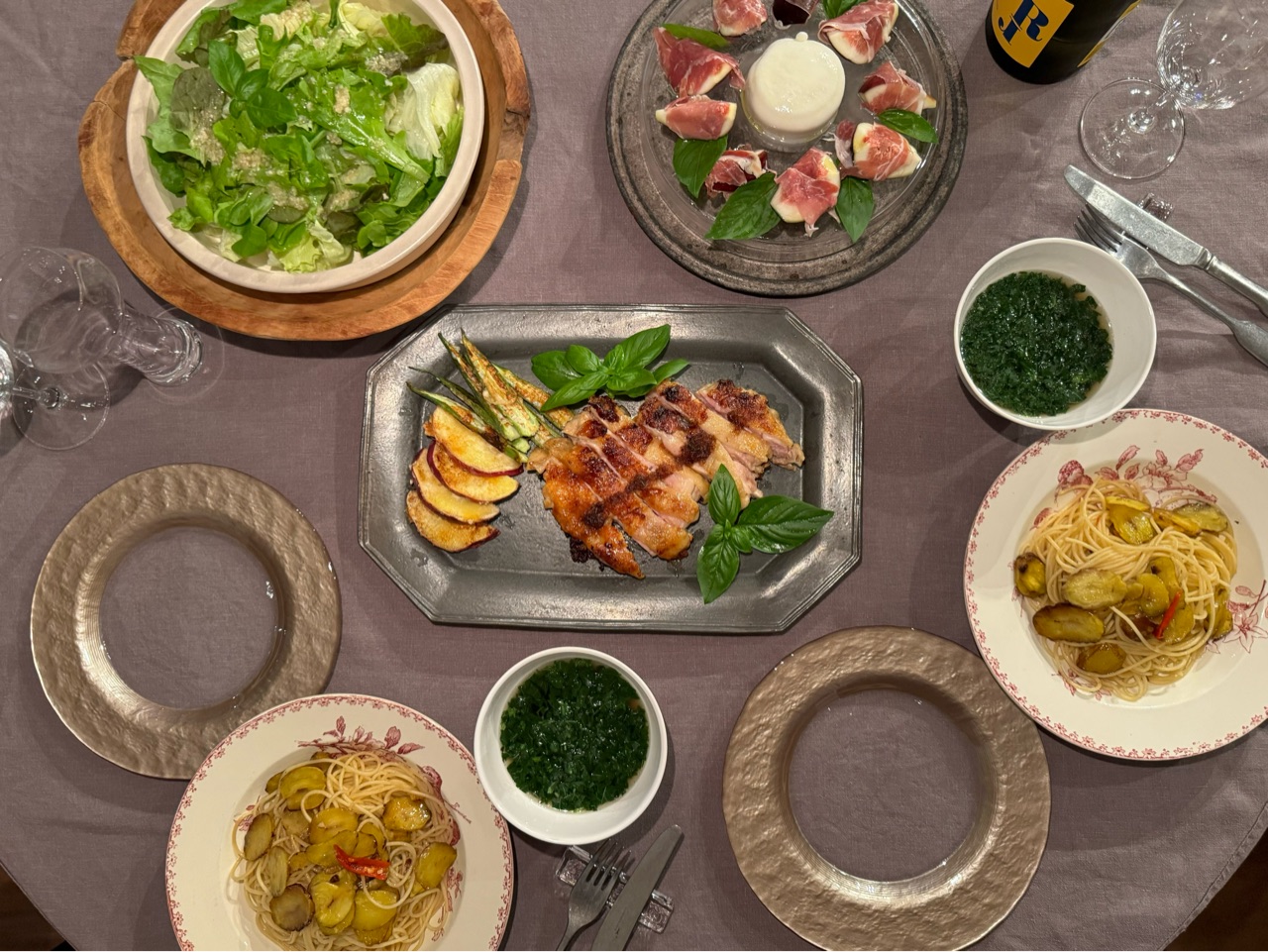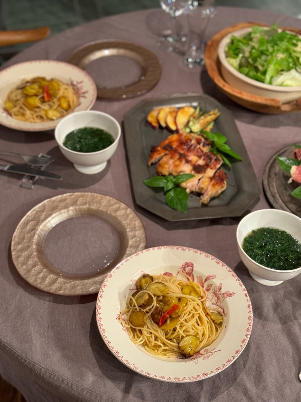 昨日は、栗のペペロンチーノをすることに決めてて、その他チキンを焼きました。