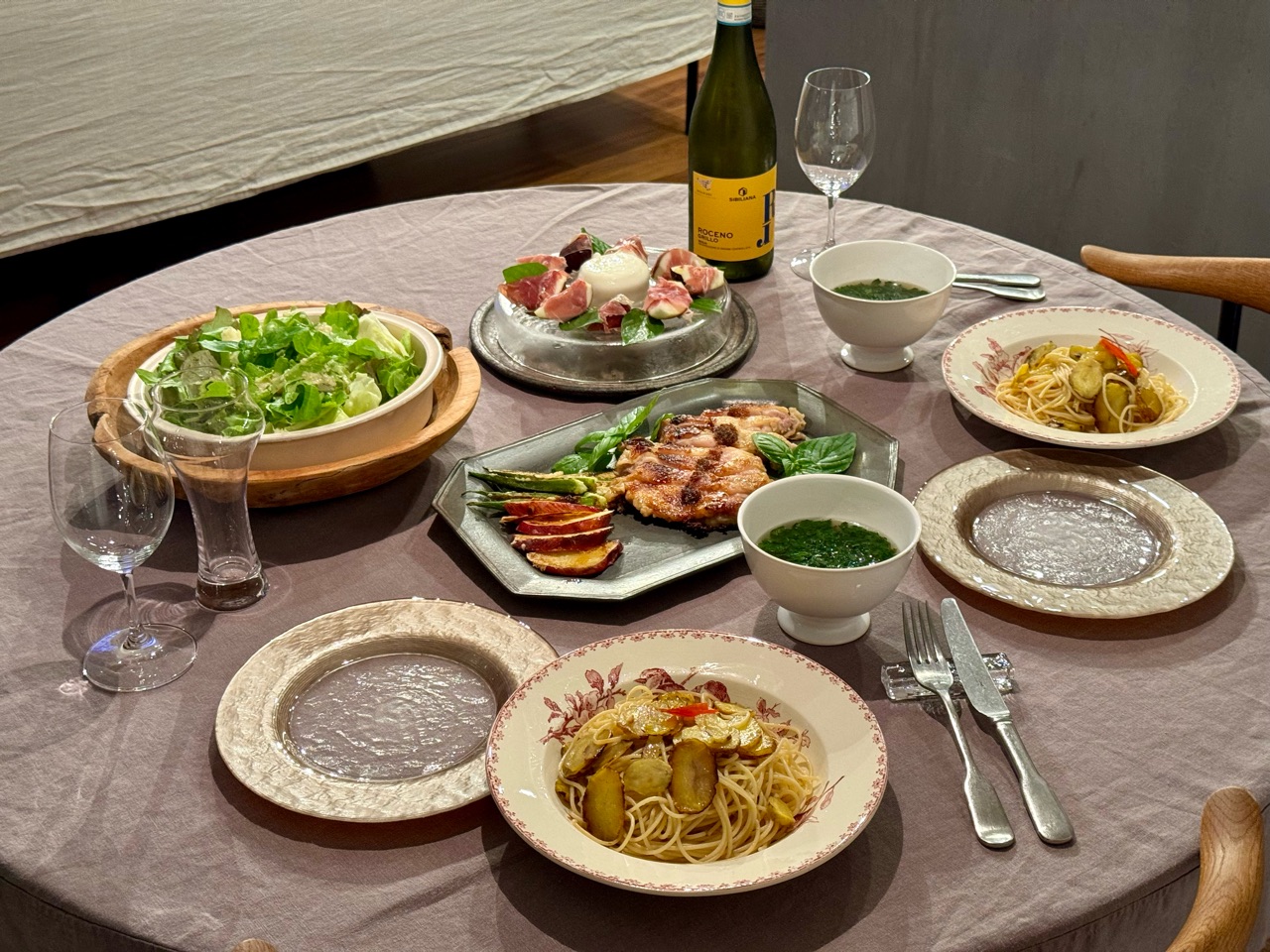 パスタのお皿は、サルグミンヌというフランスのアンティーク。