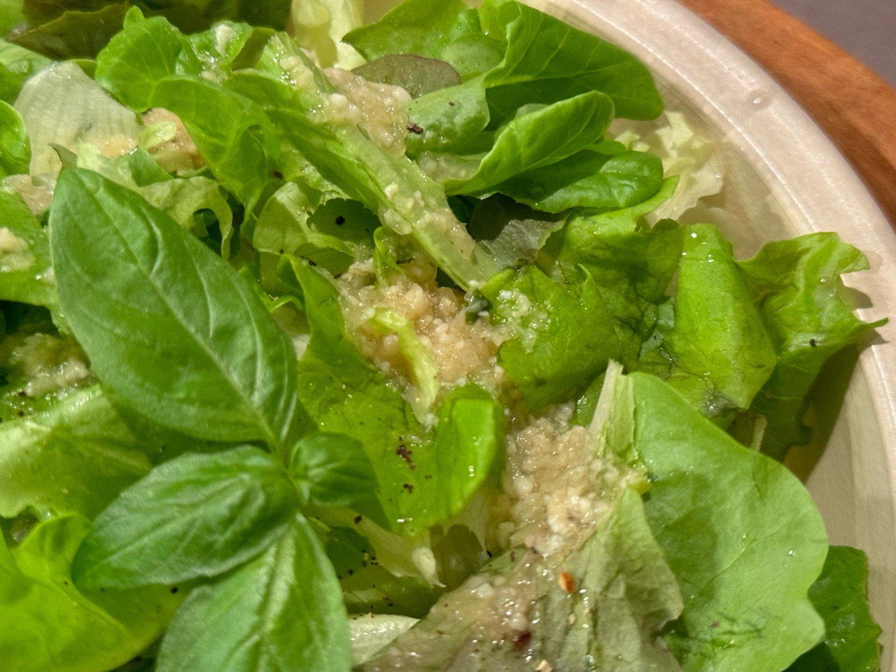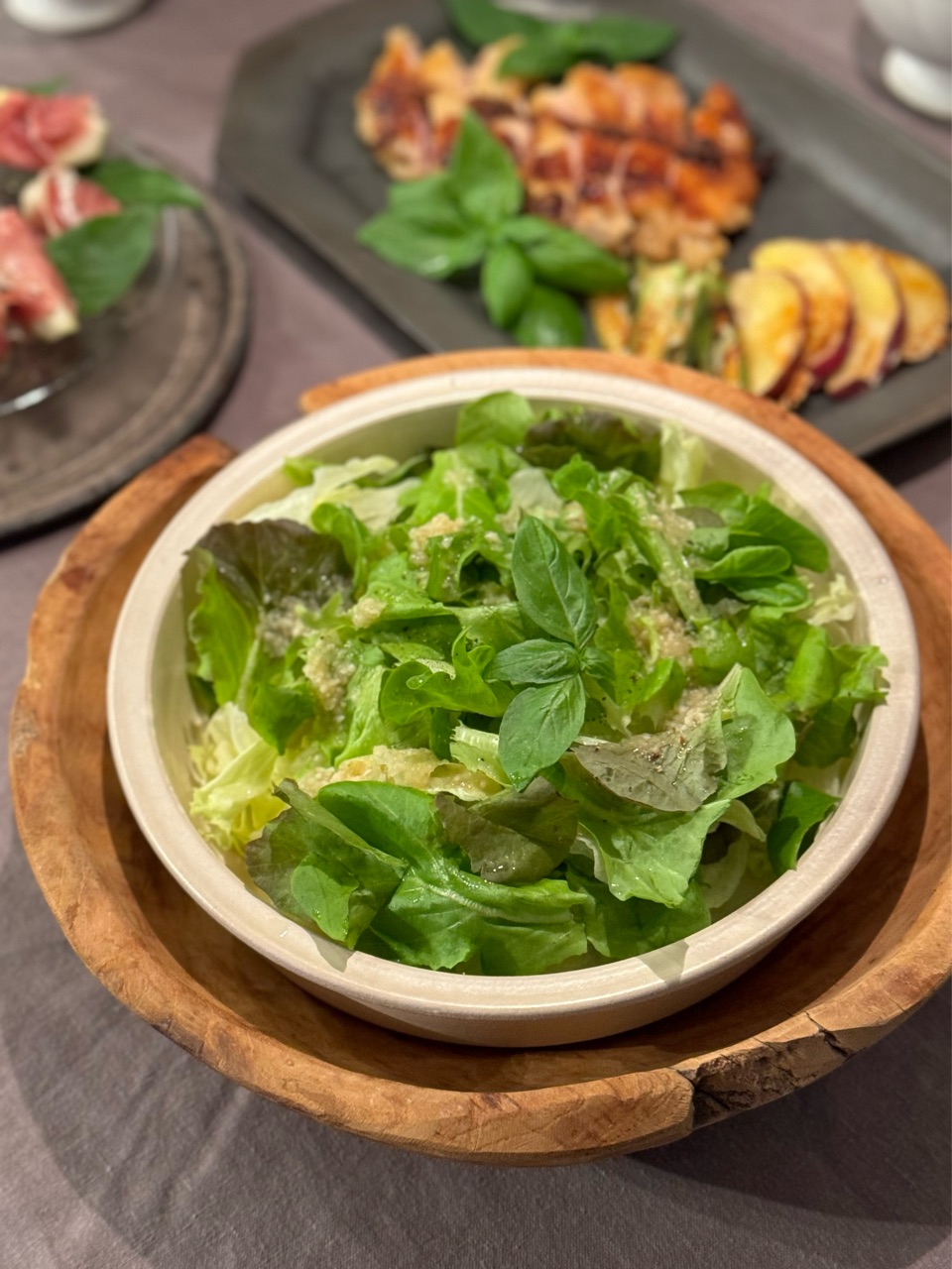 玉ねぎ麹、すだち果汁、リンゴ酢、塩胡椒、オリーブオイルで作ったドレッシングがとってもおいしかったです✨