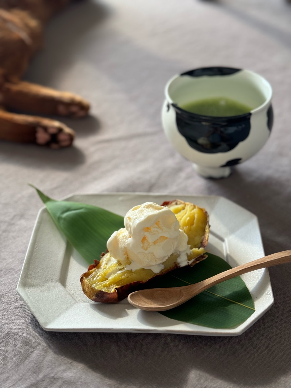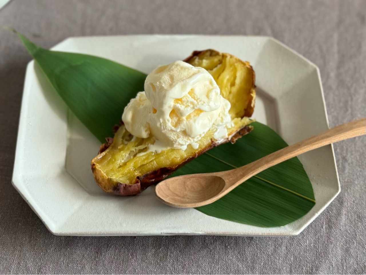 そしてこの蜜芋に、アイスを乗せて食べました。