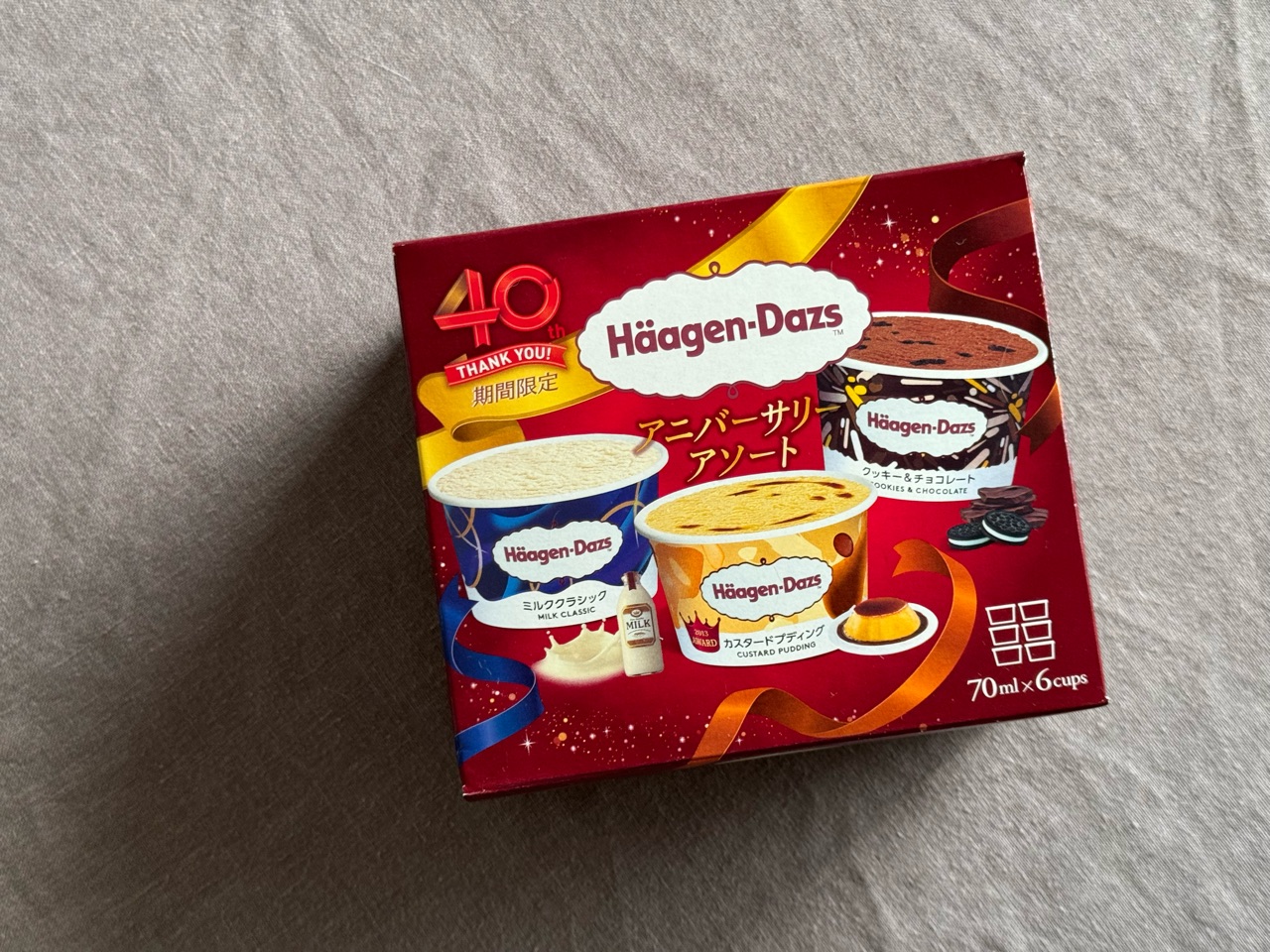 アイスは、ハーゲンダッツの期間限定のパックに入ってた、ミルククラッシックというのを使いました。