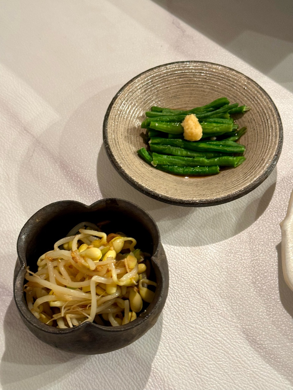 もやしのナムルと、ささげのポン酢かけ。