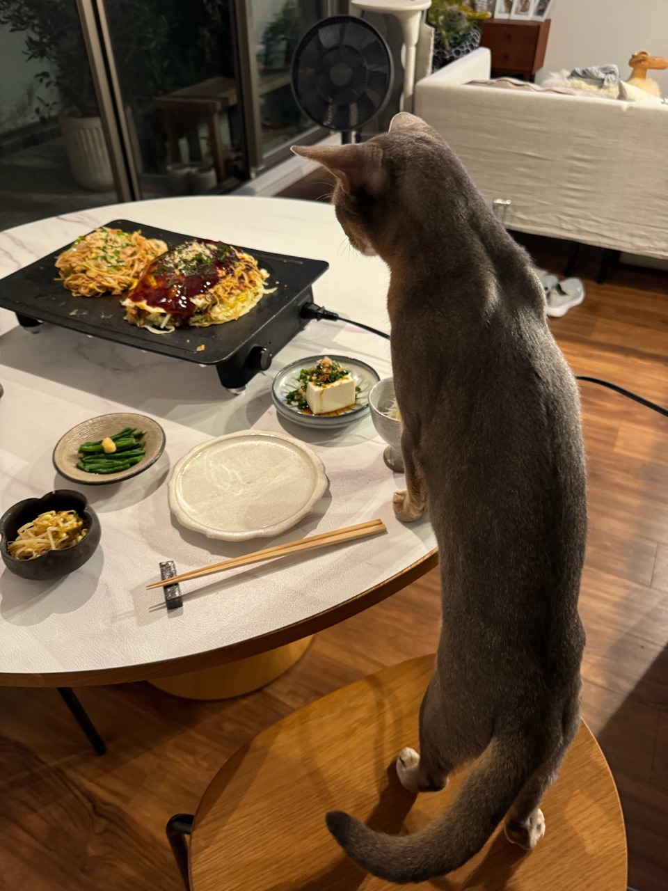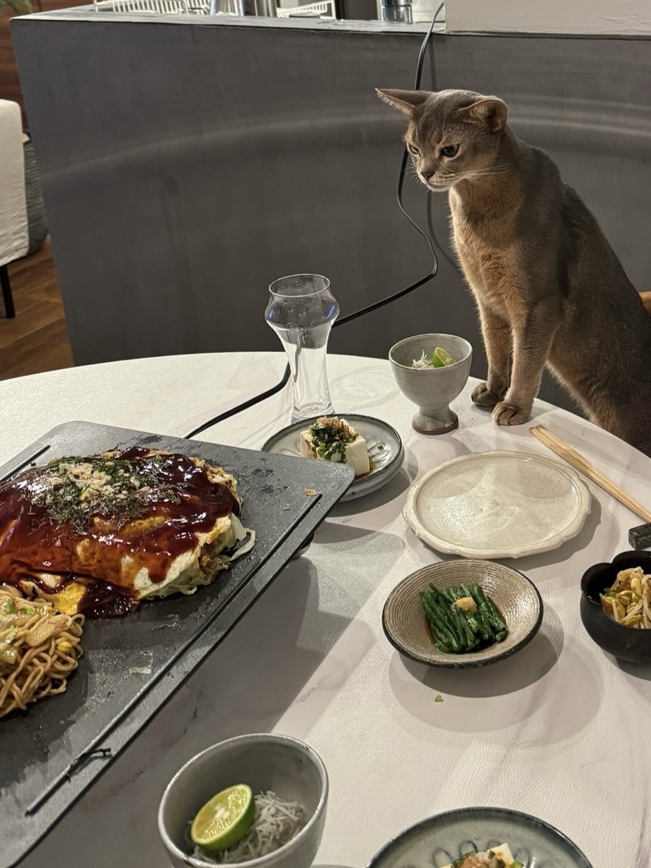 1枚目の写真、お好み焼きがめちゃ大きくてわかちゃんがちっこく見えるのは遠近のせいかとおもいましたが、実際大きなお好み焼きだったんですね🤣