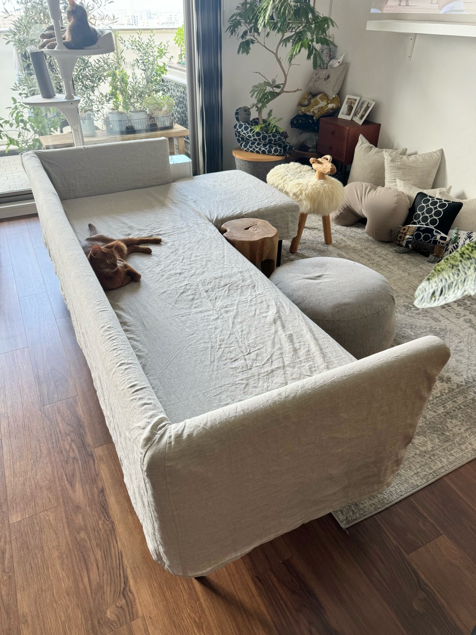 3人がけのカウチソファーのカバー作りは、とにかくしんどかった…