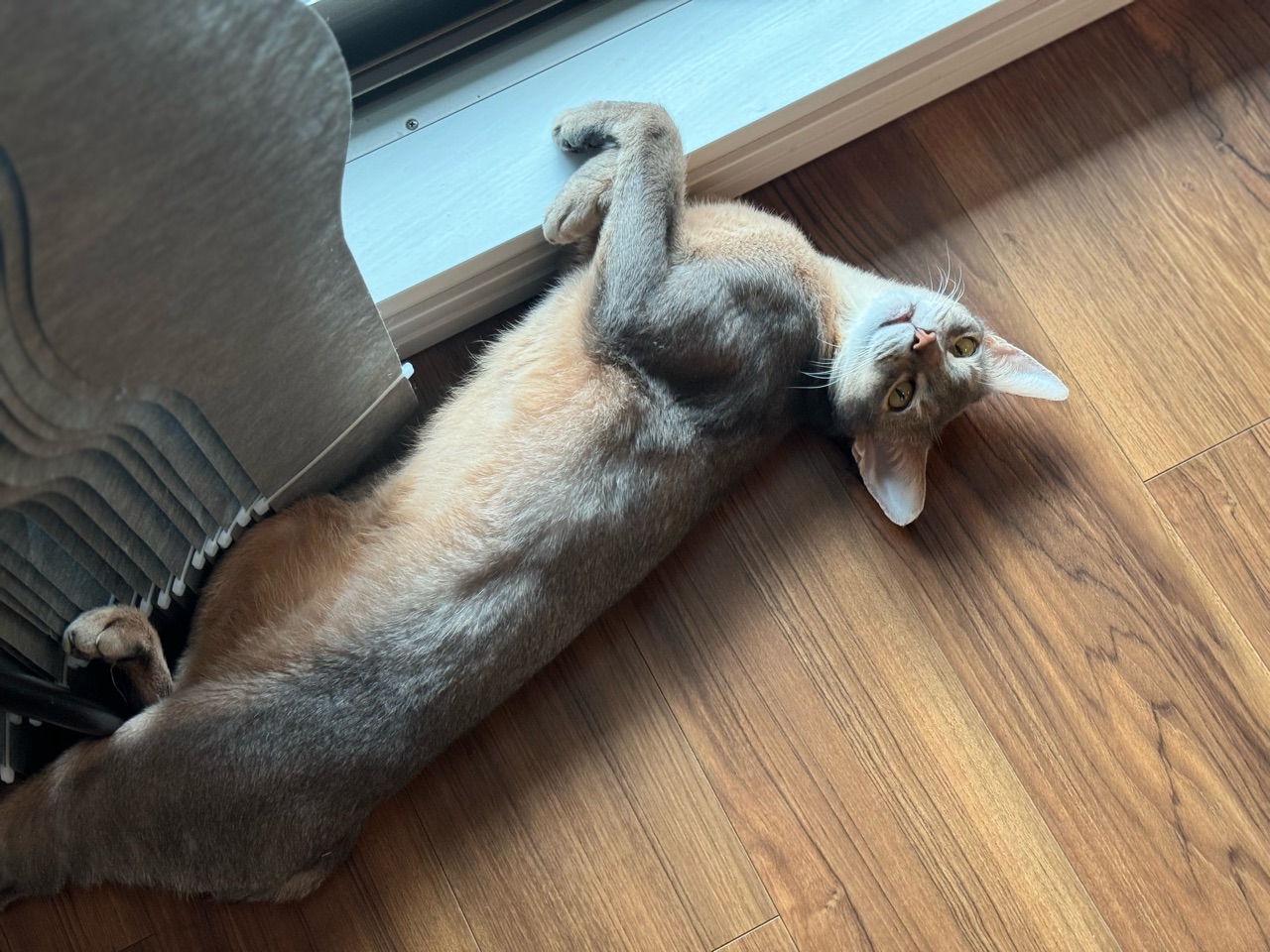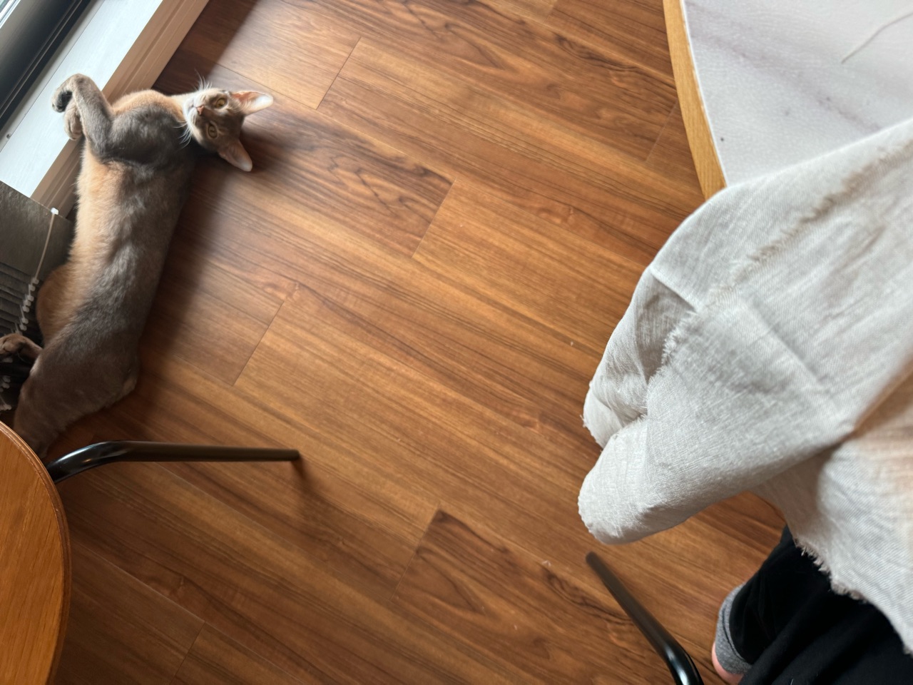さっきまで別の部屋で寝てたのに、何してるのー?って感じでやって来て、ゴロンと寝た。