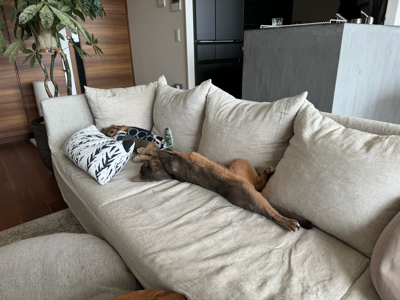 リネンの肌触りは気持ちよくて、感触にうるさいひめちゃんもお気に入りのようです♪