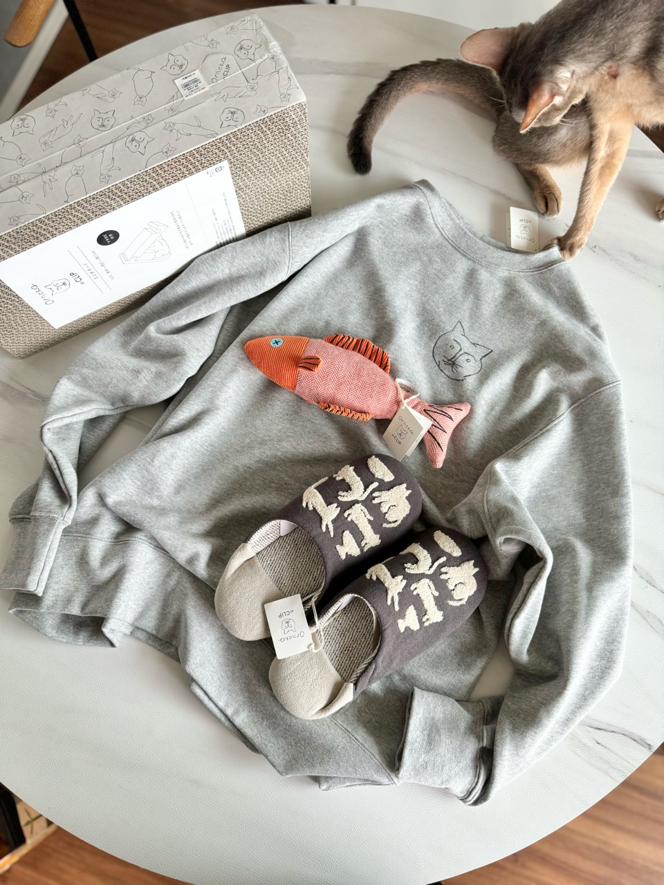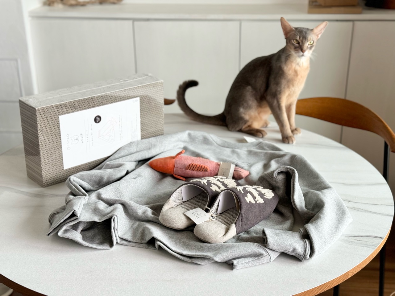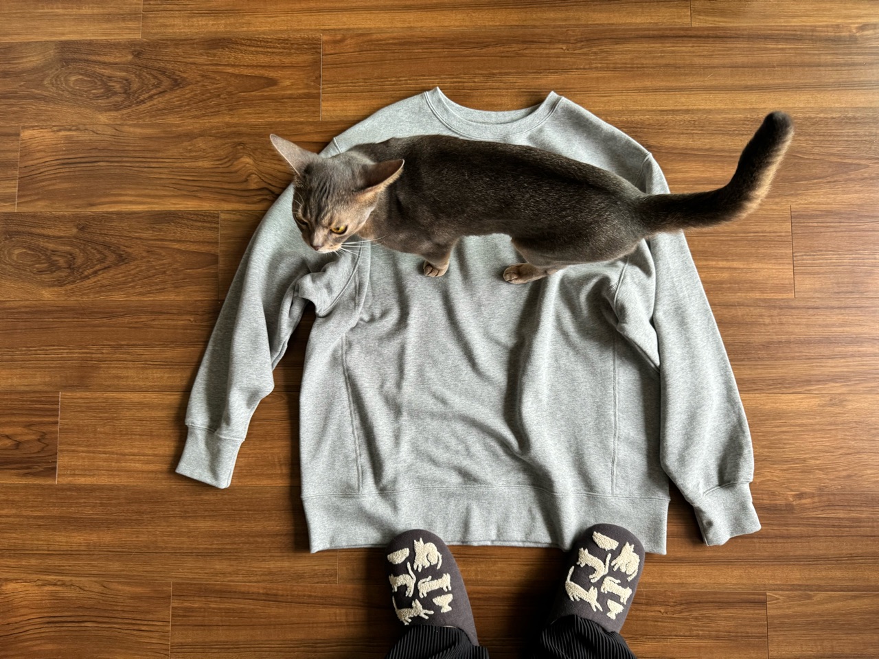 飼い主用のスウェットと、スリッパ。