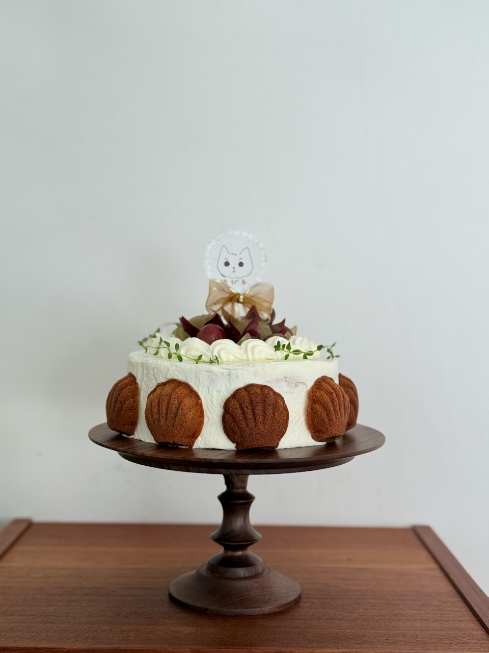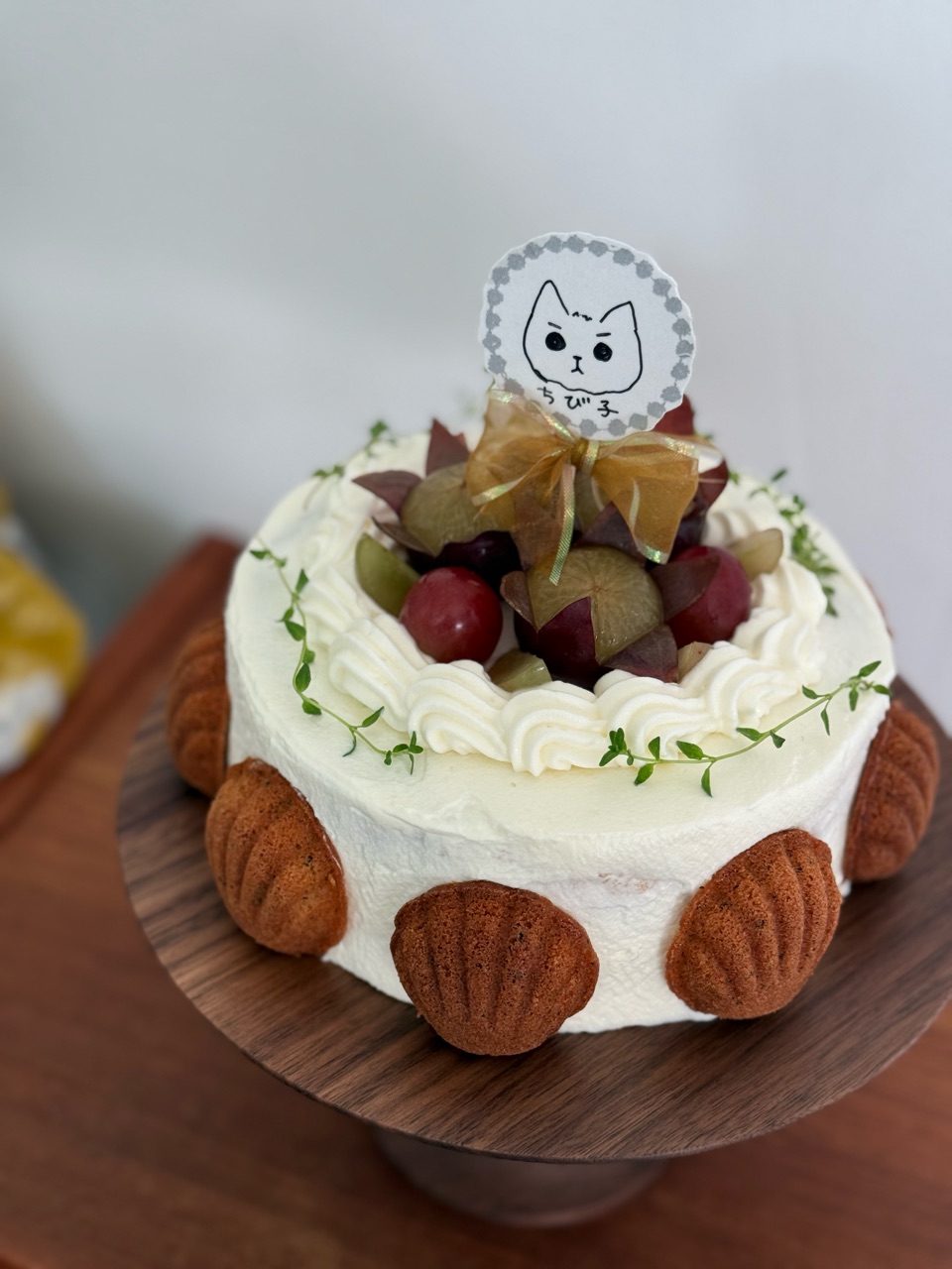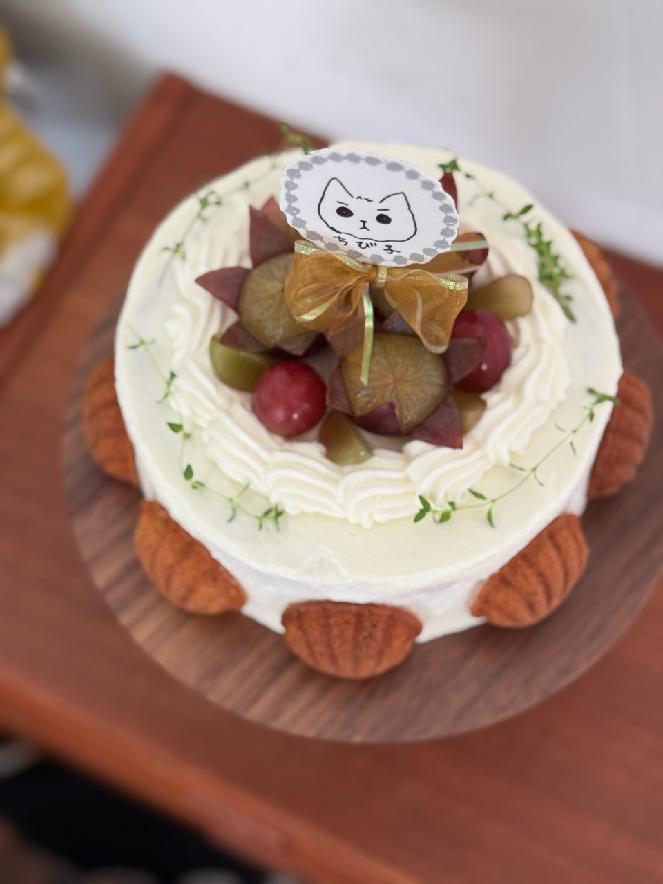 良い色(りすたん色かな😉)のマドレーヌだけでもすごいのに、クリームたっぷりできれいなデコレーションのケーキ、ちび子ちゃんへの愛情が伝わります😂
