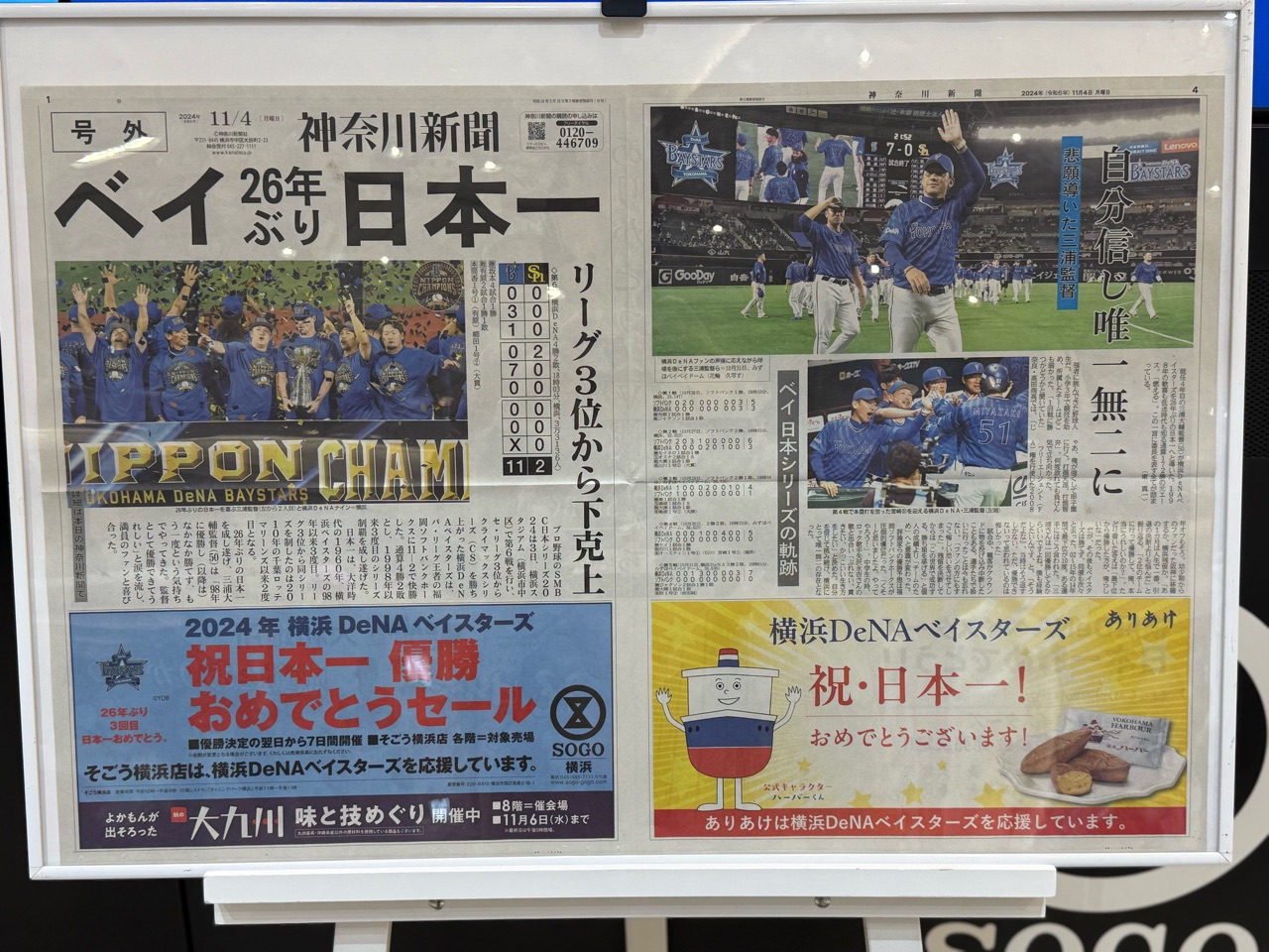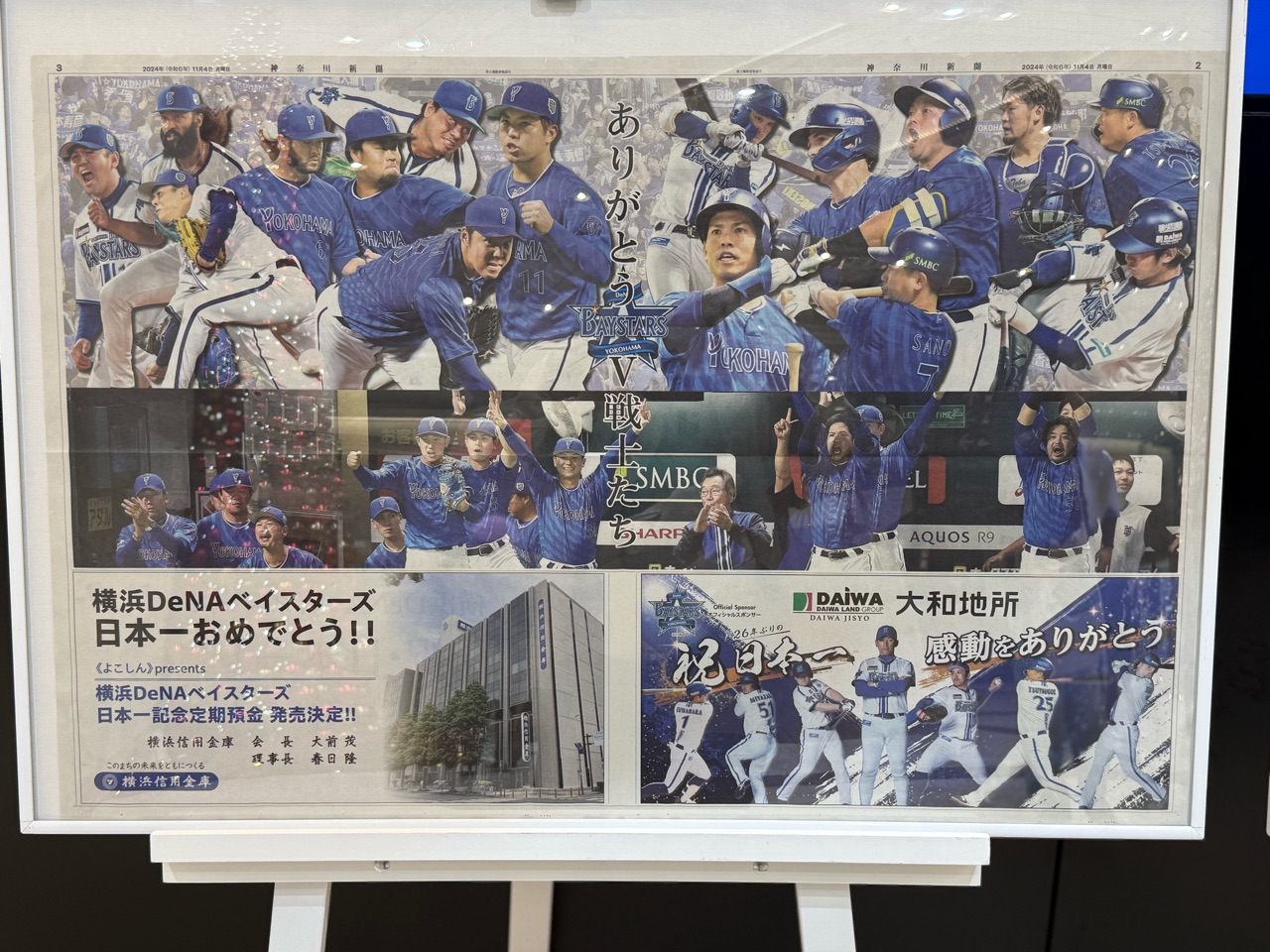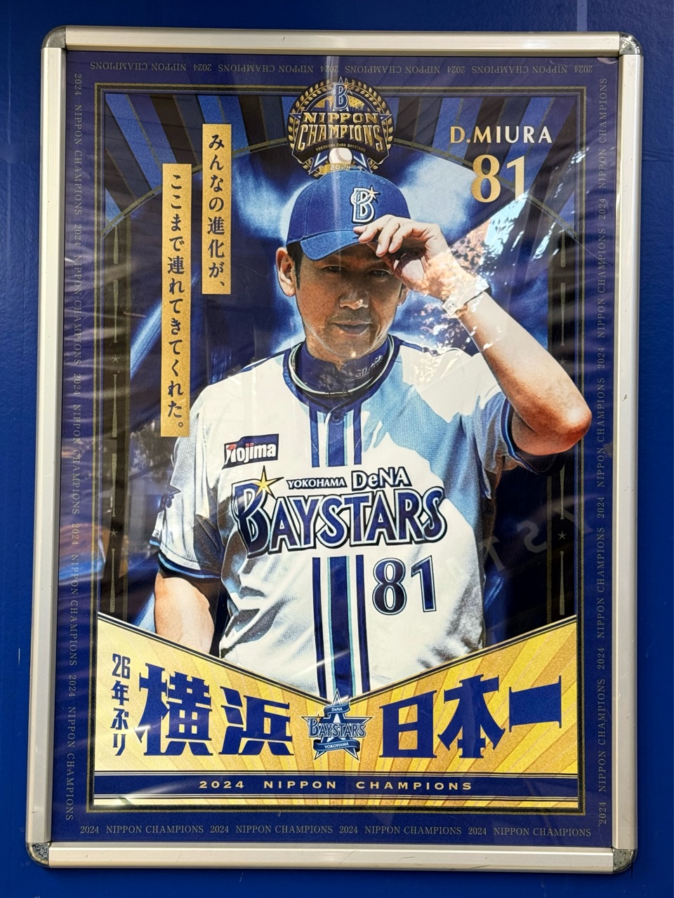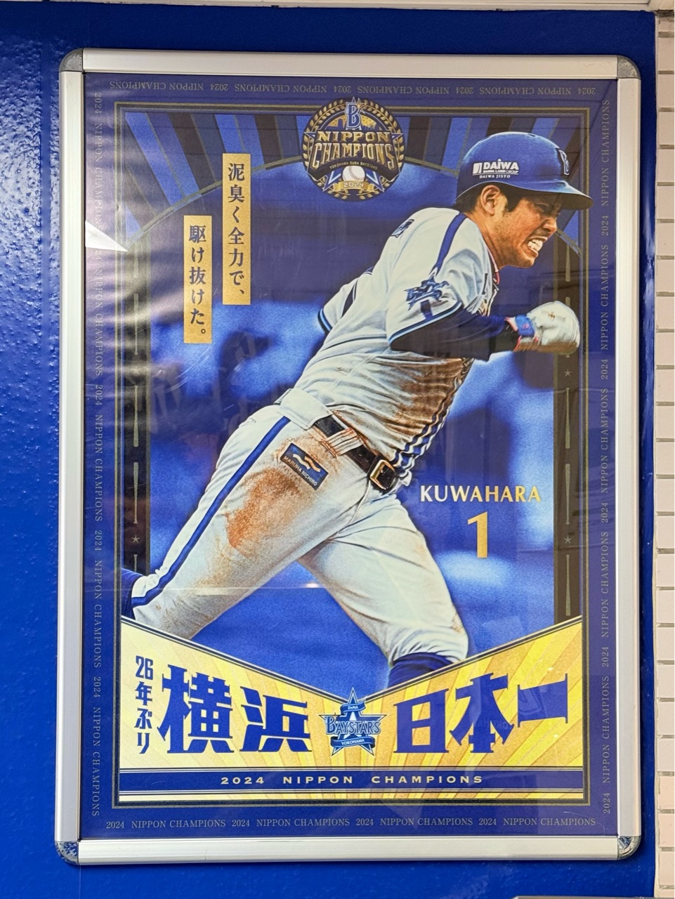 ベイスターズの本拠地、横浜スタジアムの最寄りの「関内」駅は、優勝記念のポスターが掲げられてました。
