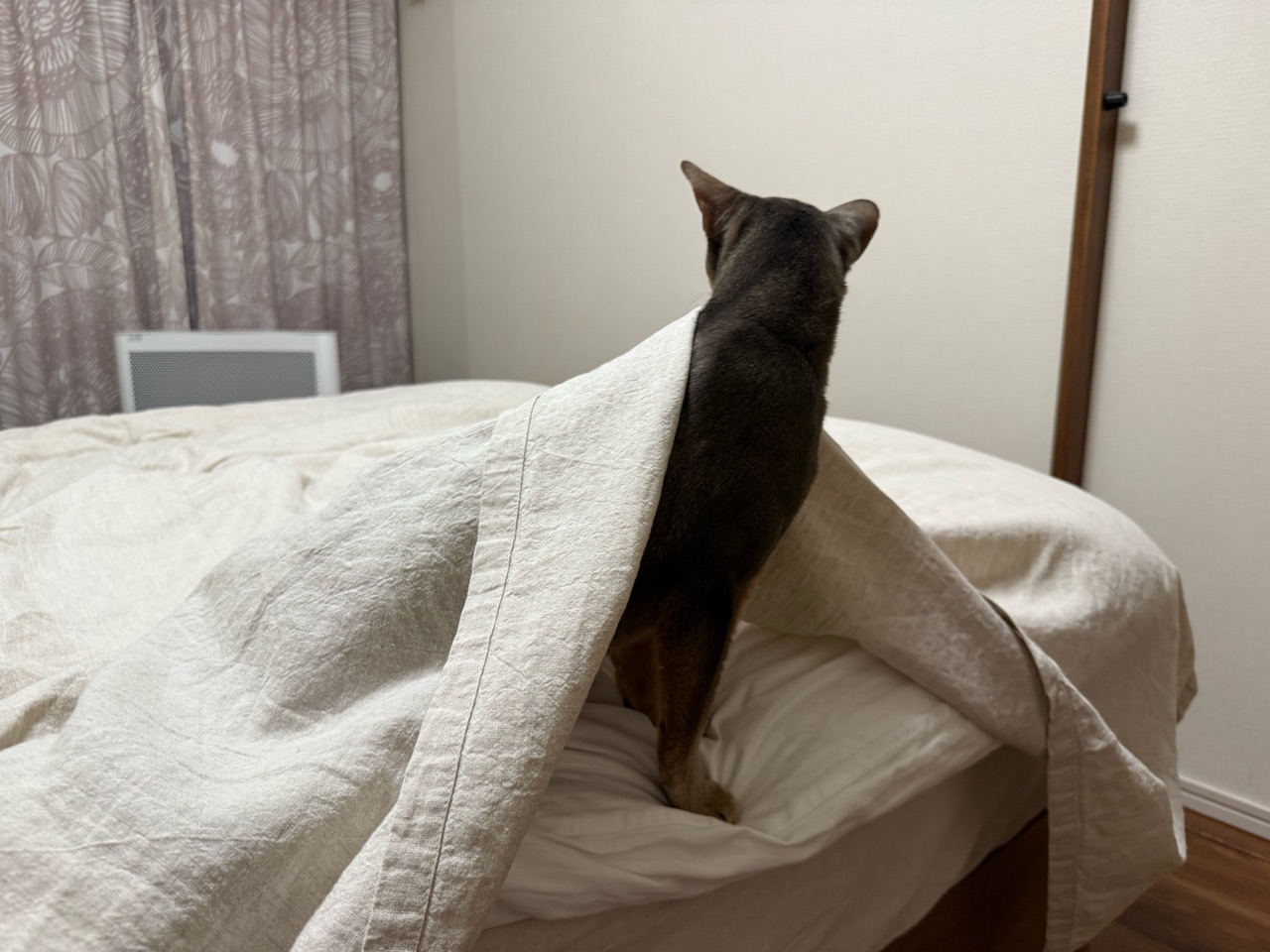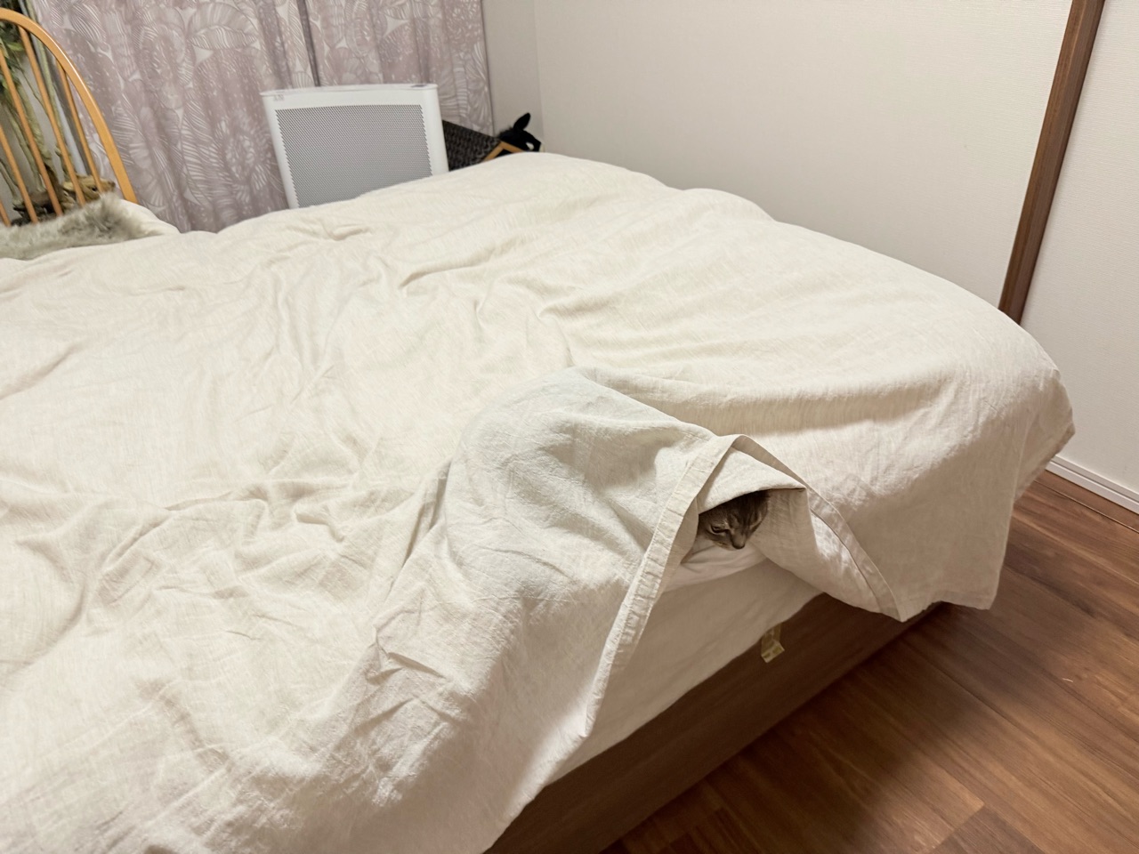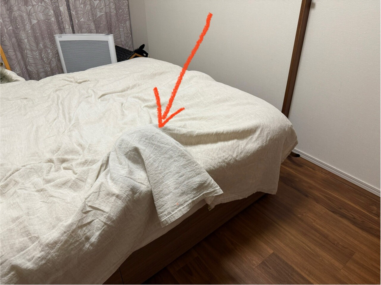 布団カバーに、不自然な膨らみ。