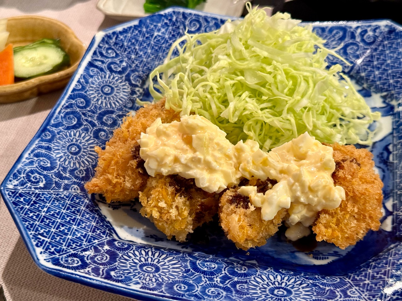 カキフライは、タルタルソースをたっぷりとかけていただきました。