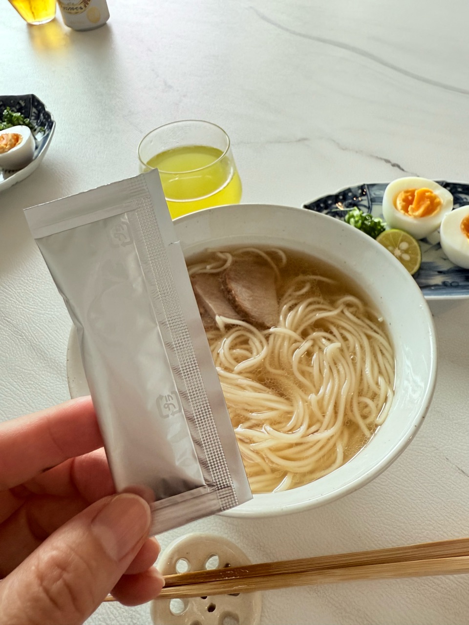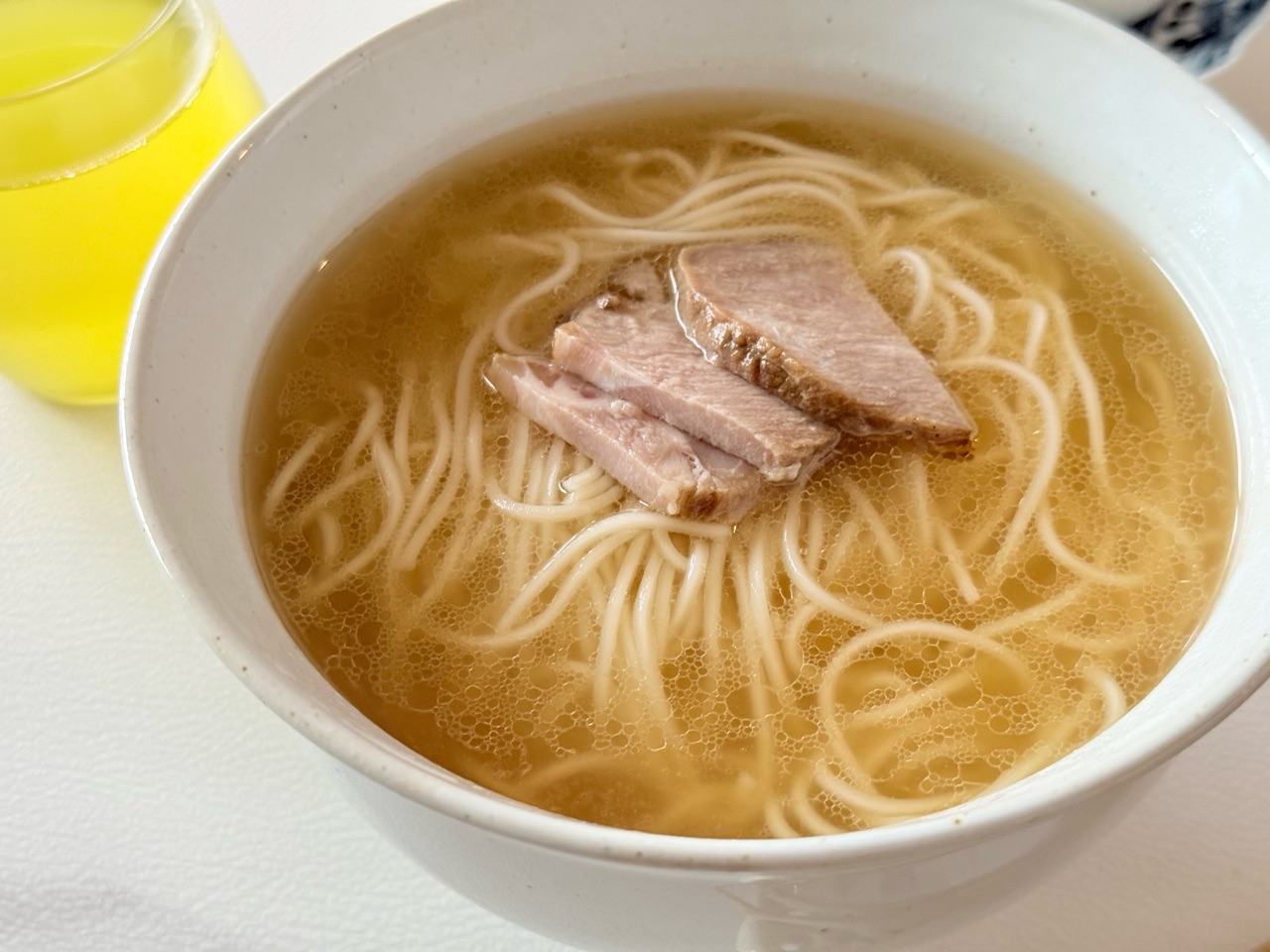 今日のお昼ごはんに、透明な豚骨ラーメンを食べました。