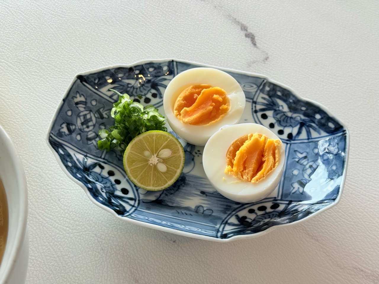 小ネギとカボスの代わりのすだちと、オプションでゆで卵。