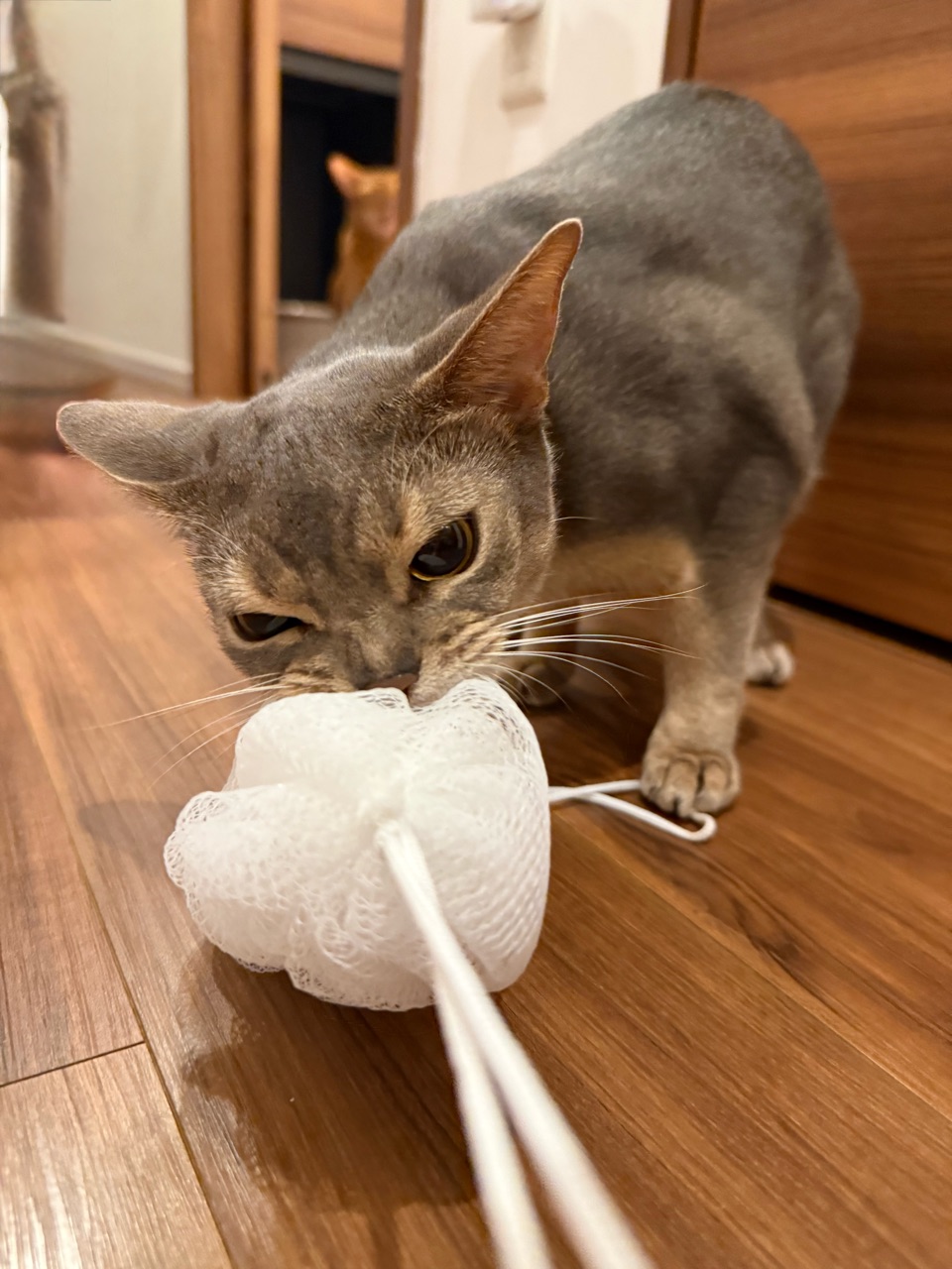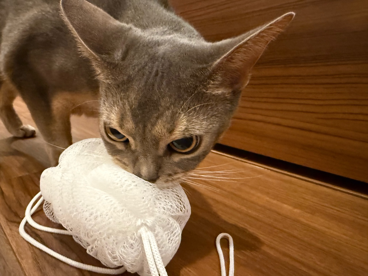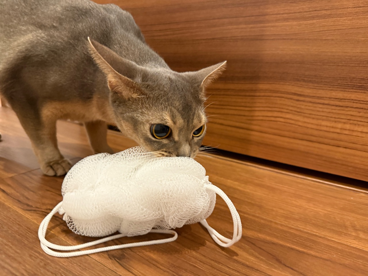 お風呂に入っていると、ドアの向こうでわか坊が遊んで欲しそうに待機する。