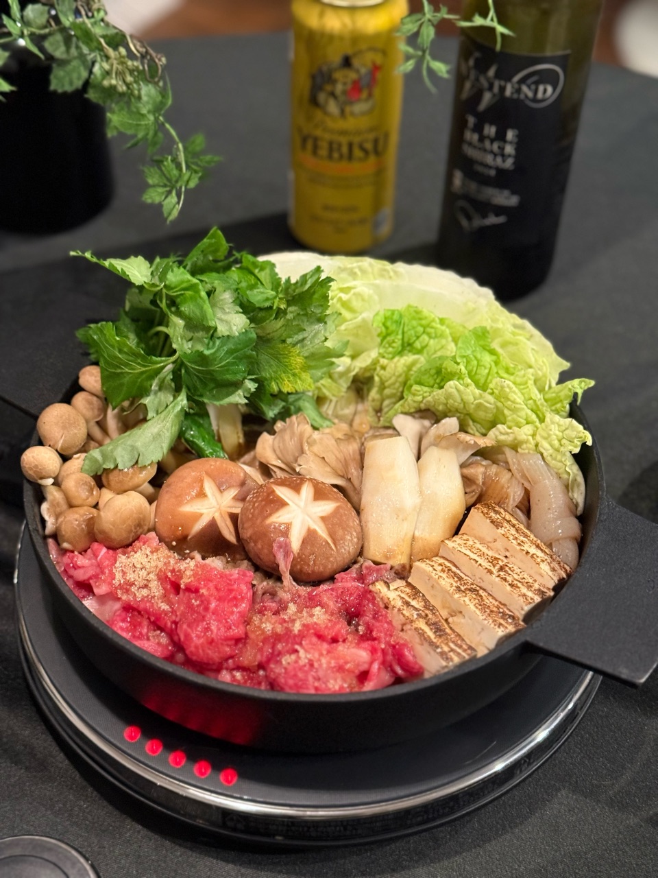 ここのところ少し涼しくなってきたのに誘われて、すき焼きしました。