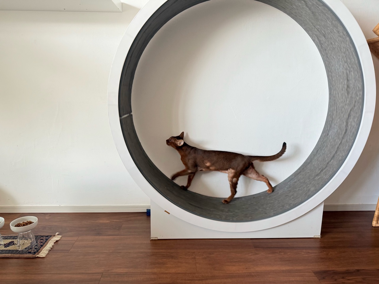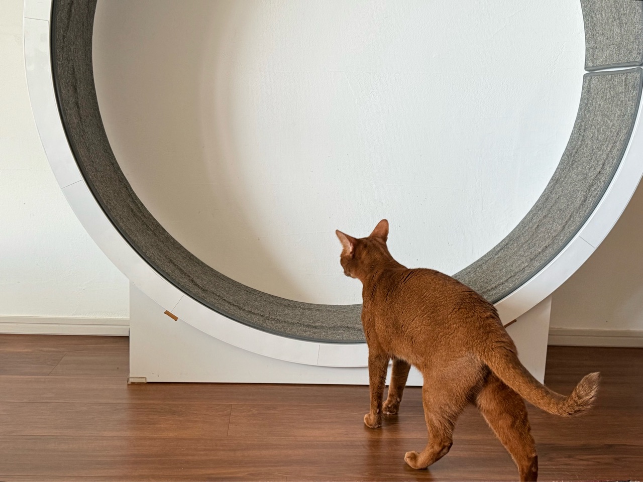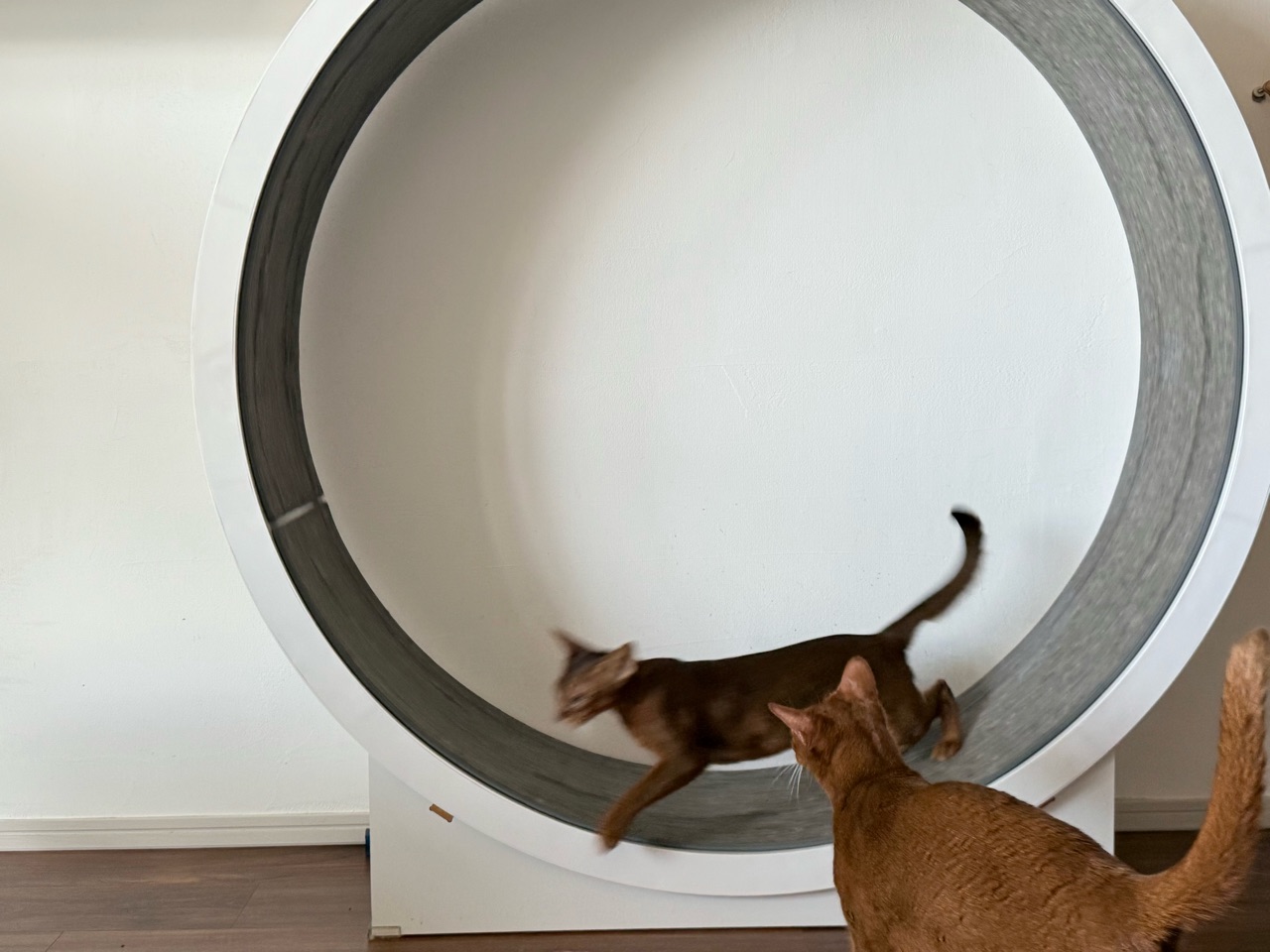 普段はお昼ごろまで寝てることの多いりすたんが、今朝は早起きをして、キャットホイールでウォーキングしてた。