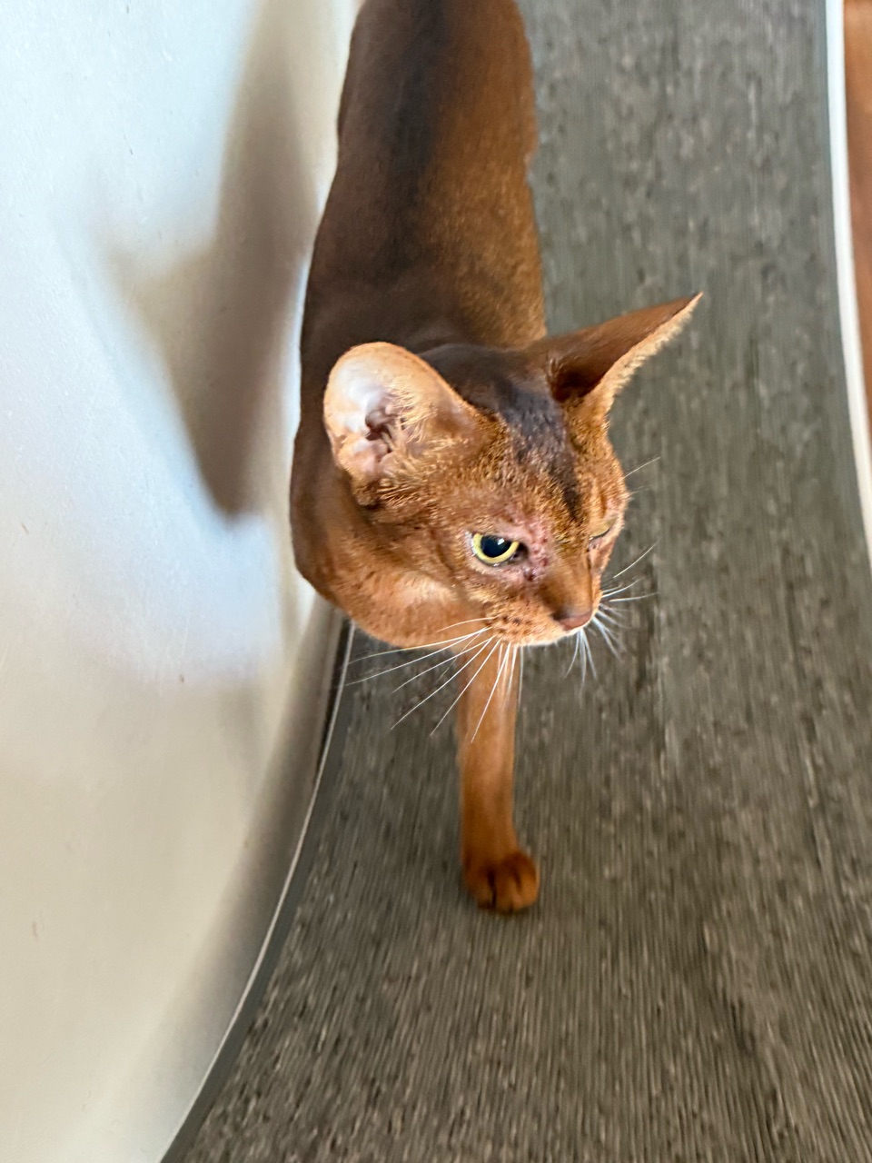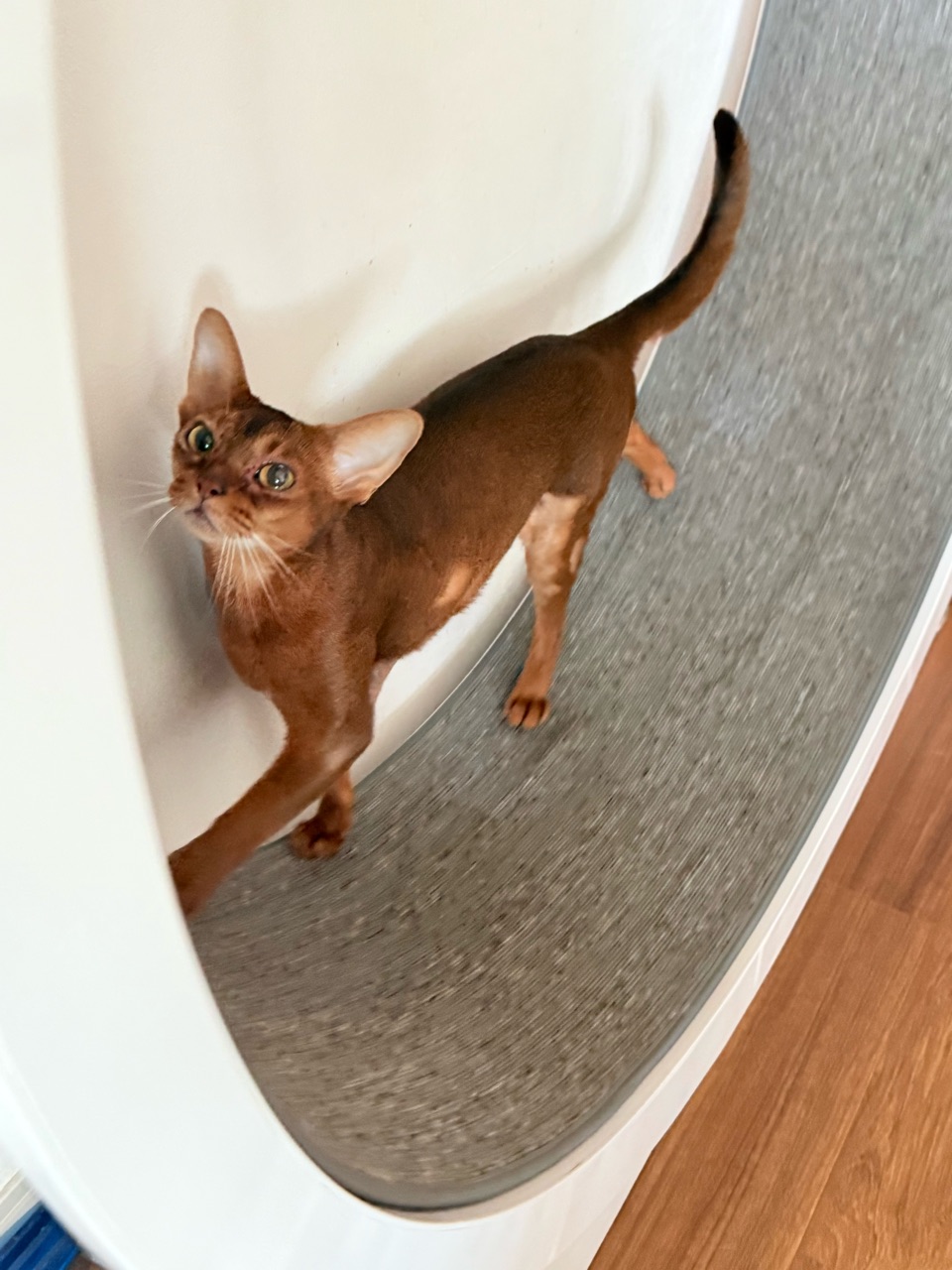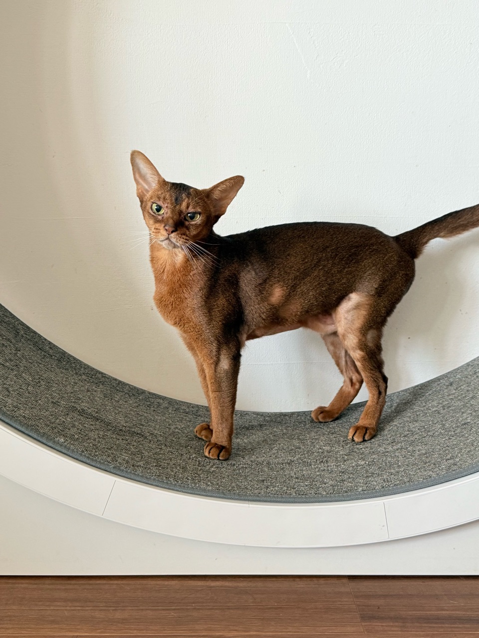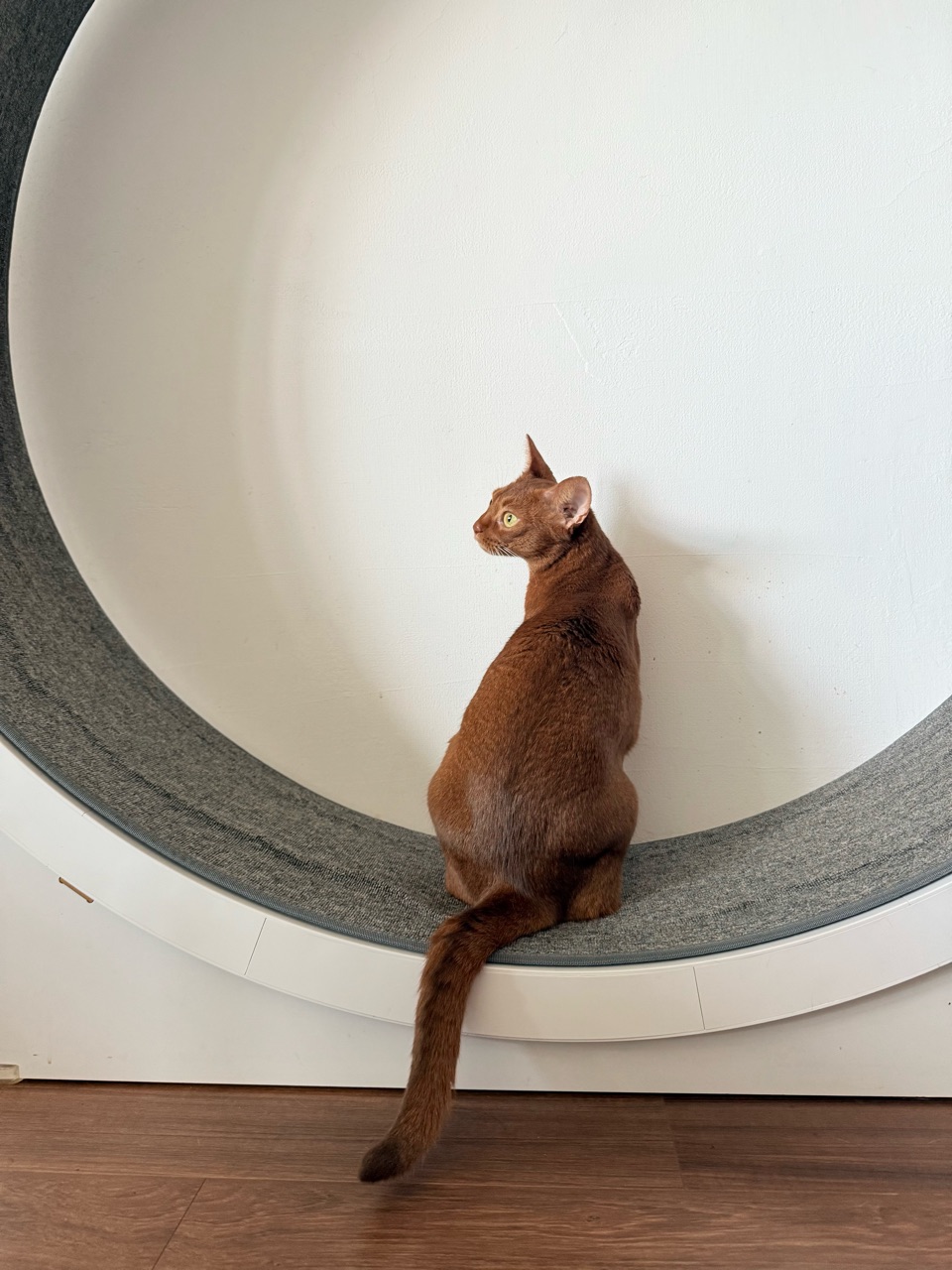 普段はお昼ごろまで寝てることの多いりすたんが、今朝は早起きをして、キャットホイールでウォーキングしてた。
