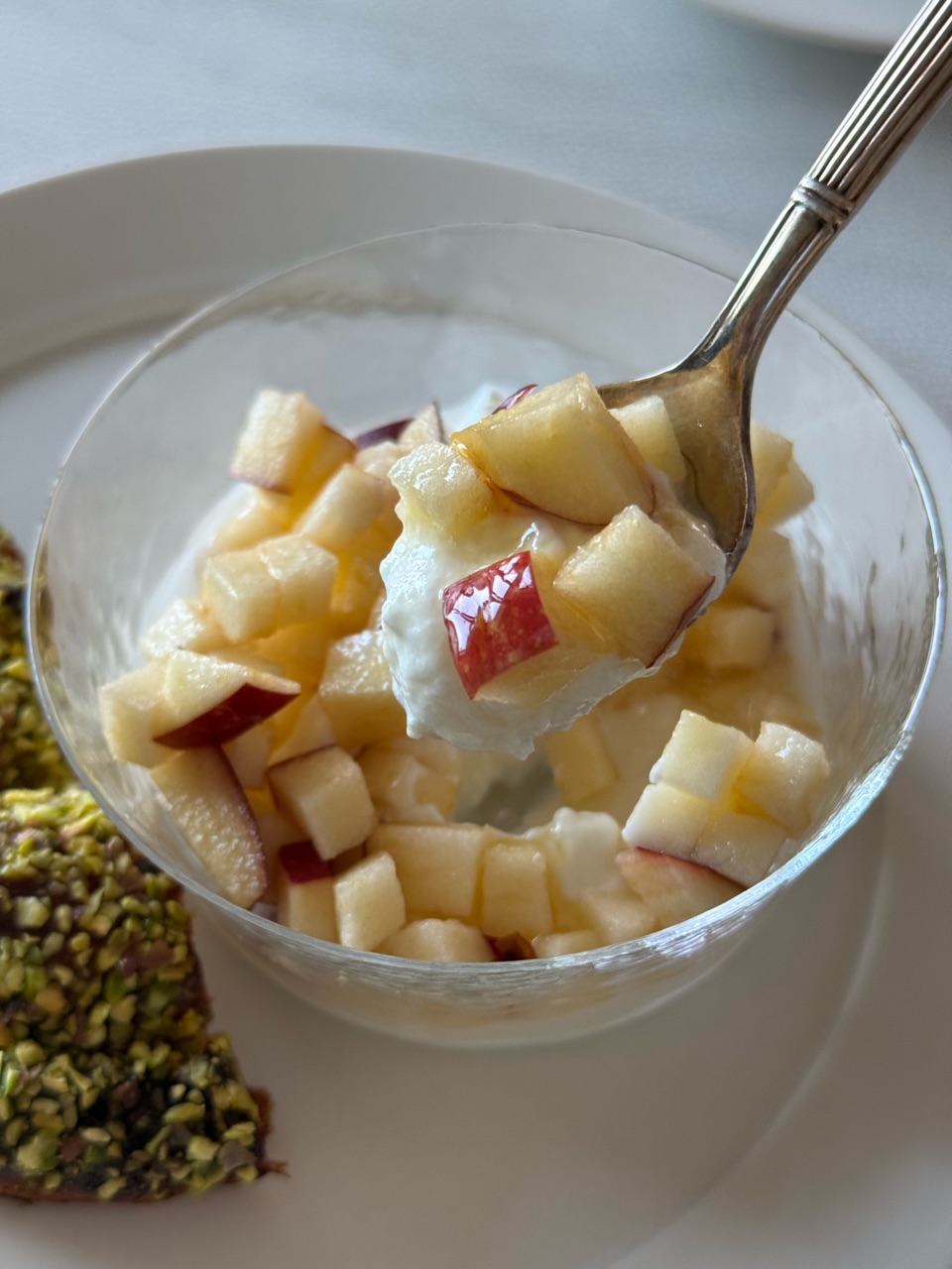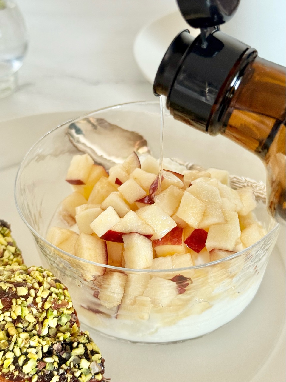 朝ごはんにヨーグルトを食べるんですが、その先にかけています。