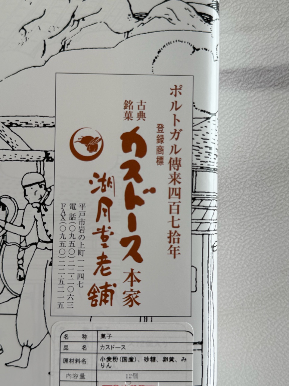 こちらは、長崎の平戸にある「湖月堂老舗」さんで作られています。