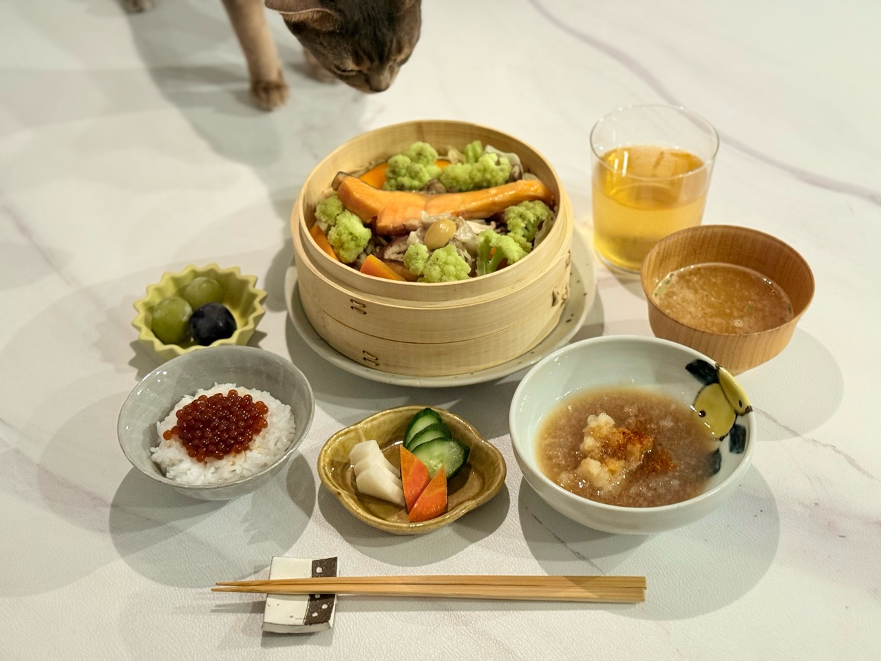 野菜とかお肉とかお魚とか、適当に並べて、なんでも一気に蒸せる♪