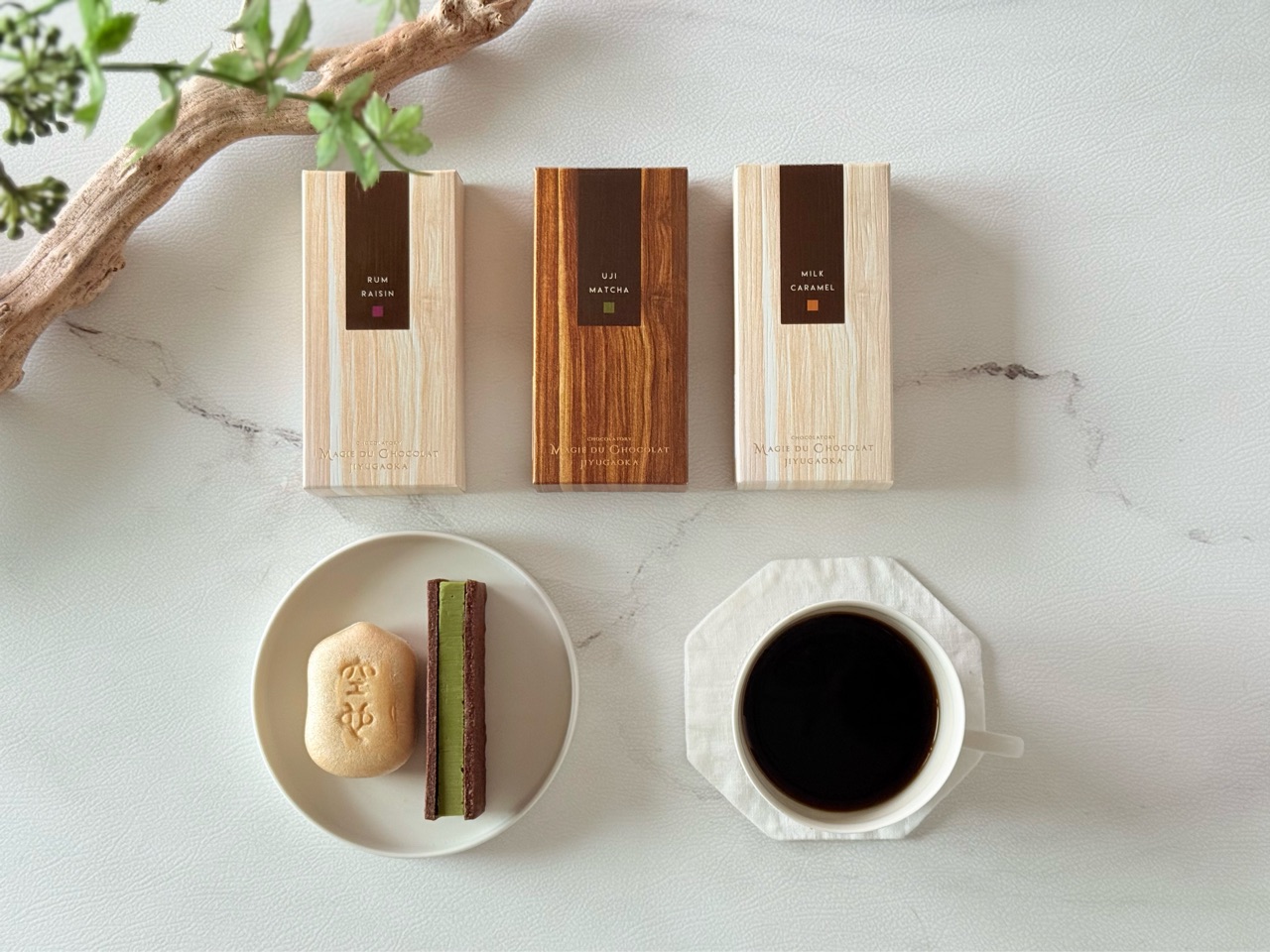 先日会ったお友達たちにいただいた、「空也」さんの最中と、「MAGIE DU CHOCOLAT 」さんのマジドカカオというチョコレートサンドをいただきました。
