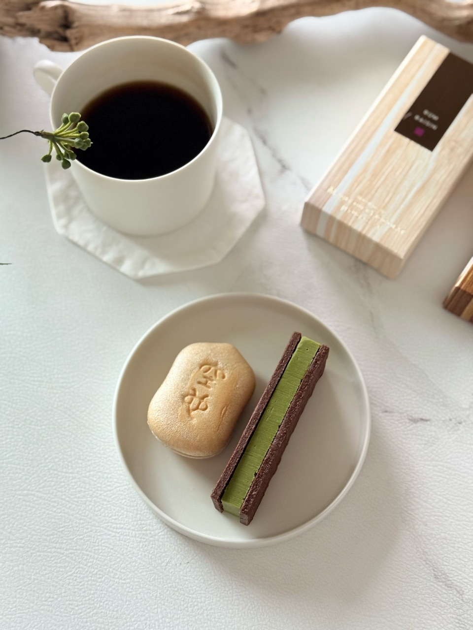 お抹茶味のチョコレートサンドと共に、和洋折衷なおやつになりました♪