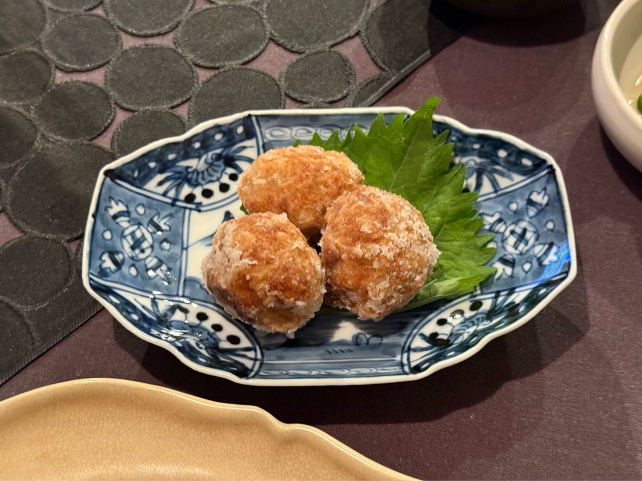レンチンして柔らかくした里芋を潰して、だし醤油とガーリックパウダーとおろし生姜を混ぜて丸めて片栗粉を付けて揚げました。
