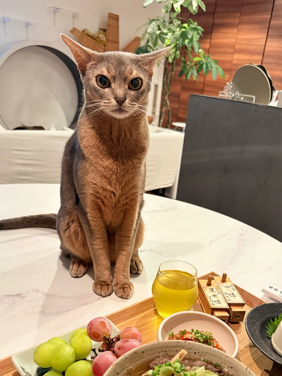 あっちかへ、こっちへ、移動してお肉くれ圧をかけてくる。