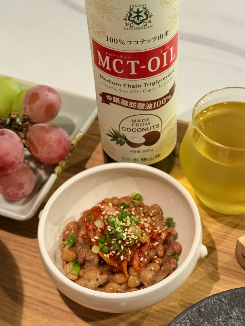 特に運動とかはしてなくて、ストレッチと軽くスクワットの筋トレ⁇らしきことをちょこっと気が向いた時にしてるんですけど、MCTオイルを摂り始めたら少し体重減った✨