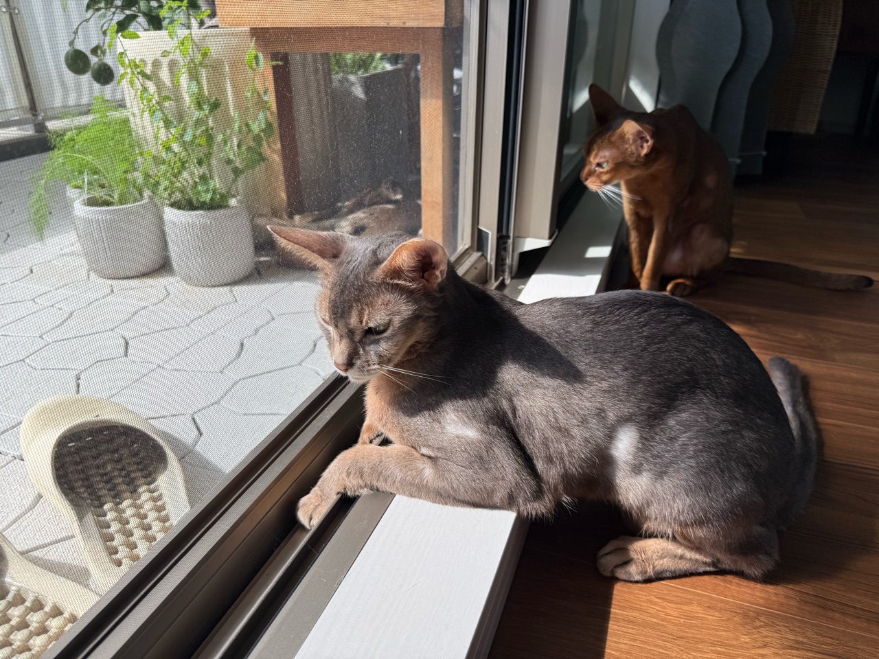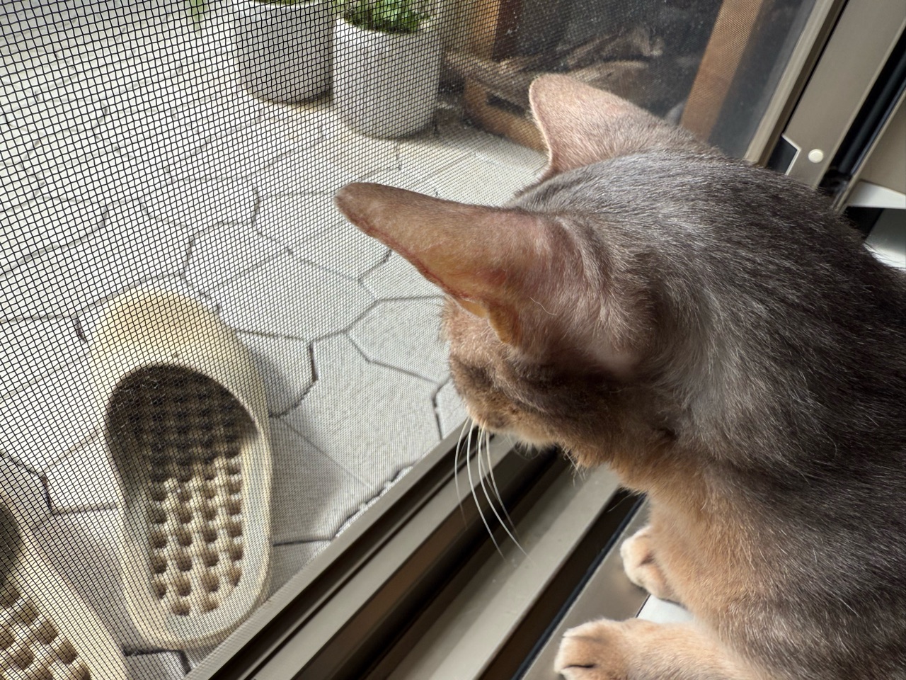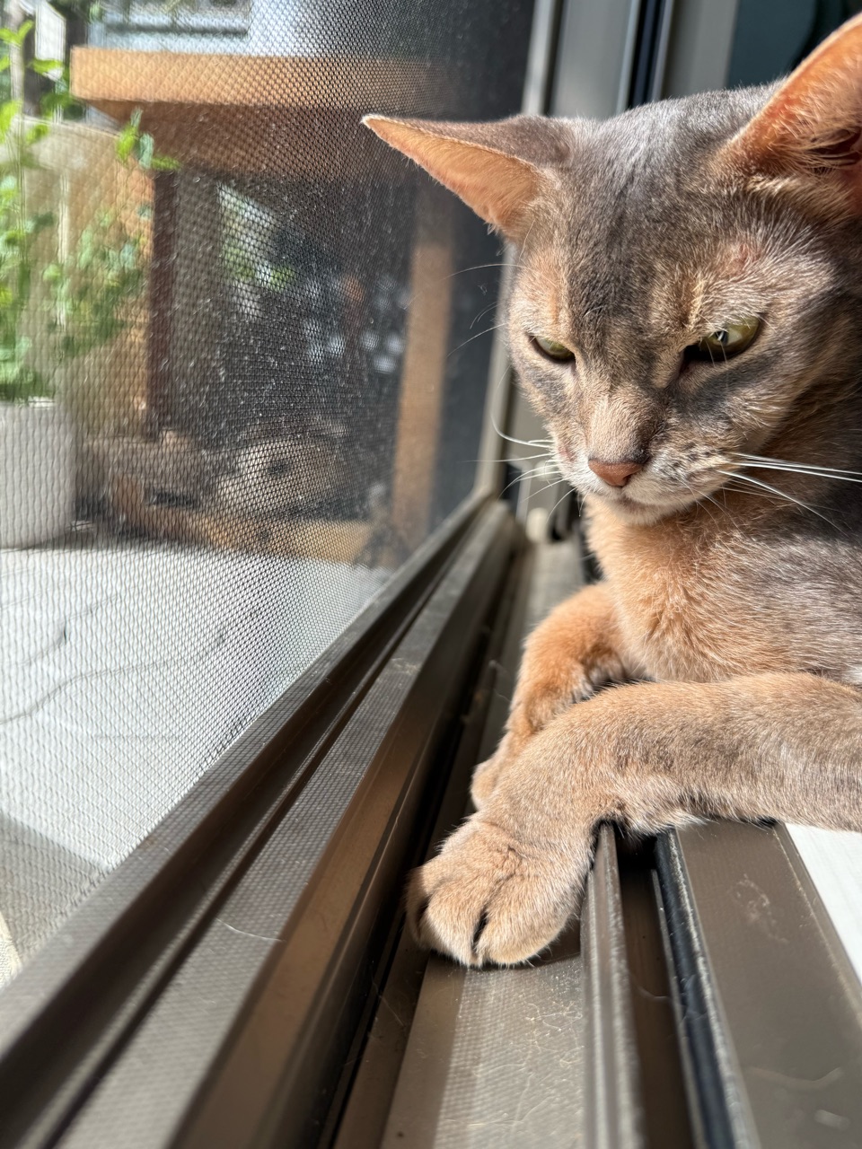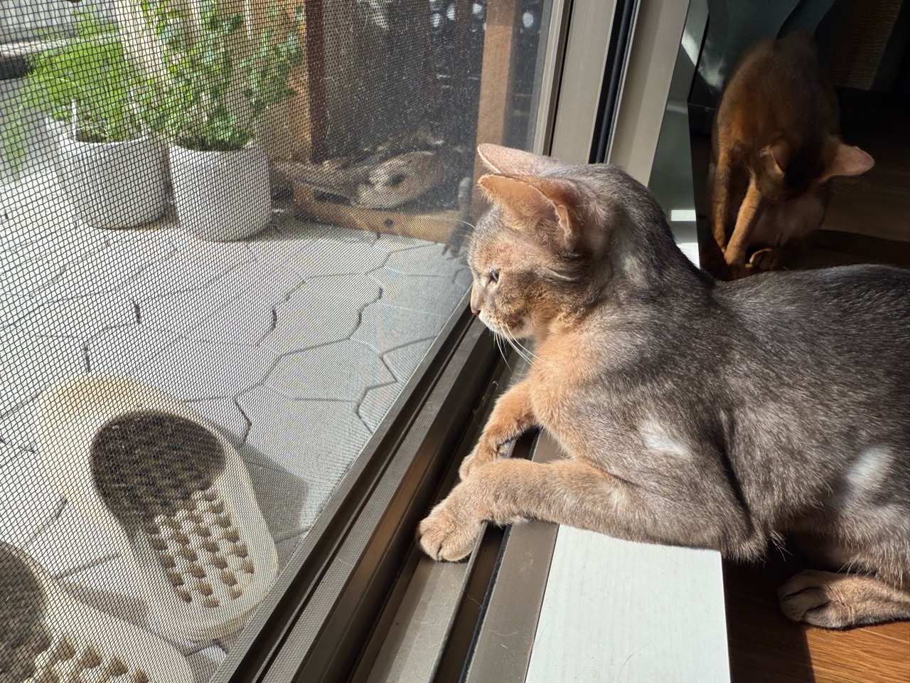りすは、お兄ちゃんの様子につられて窓際にきてるけど、虫さんのことはまだ見つけられてない(๑¯◡¯๑)
