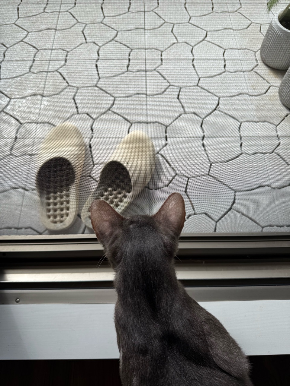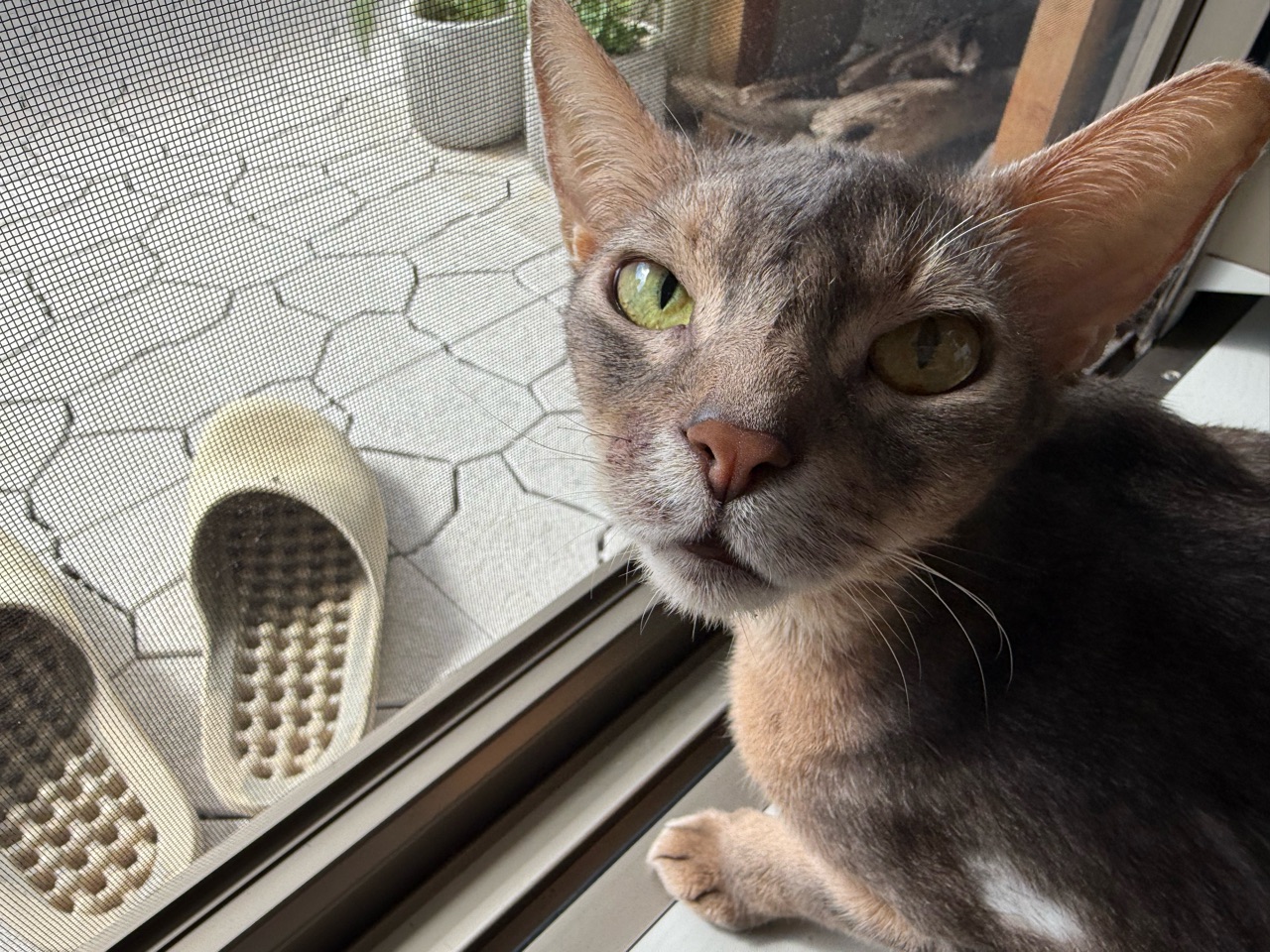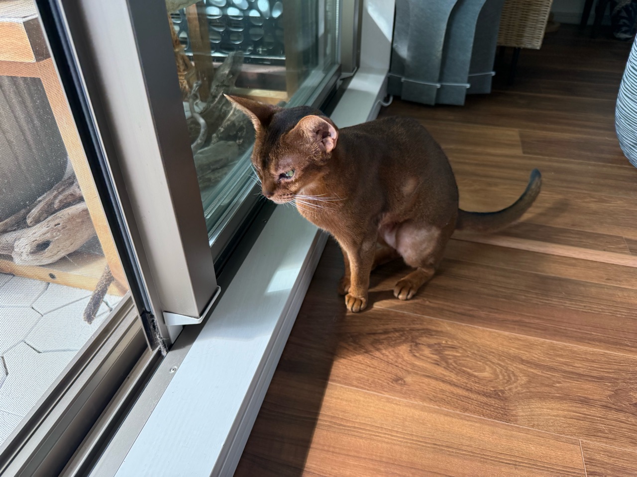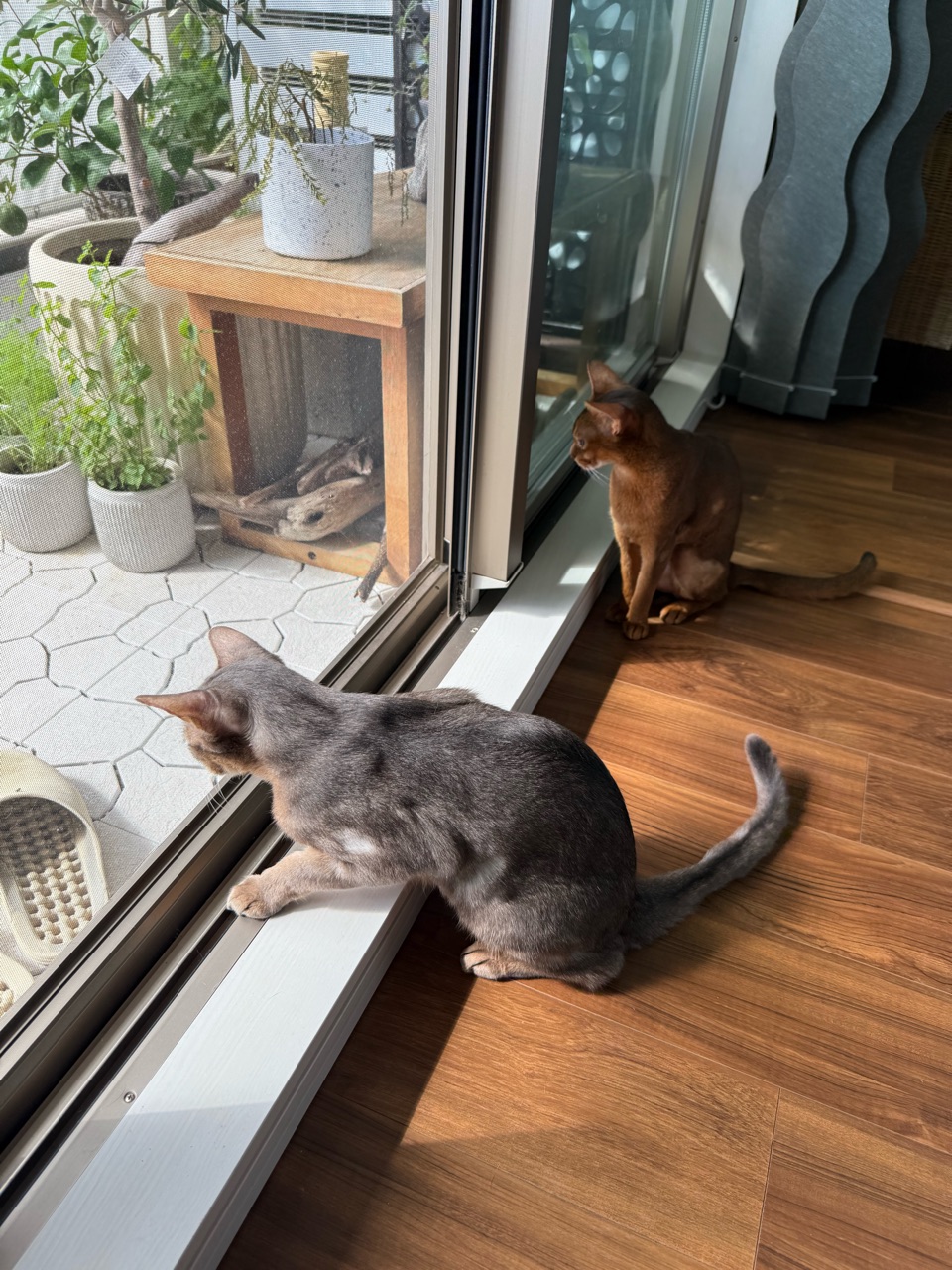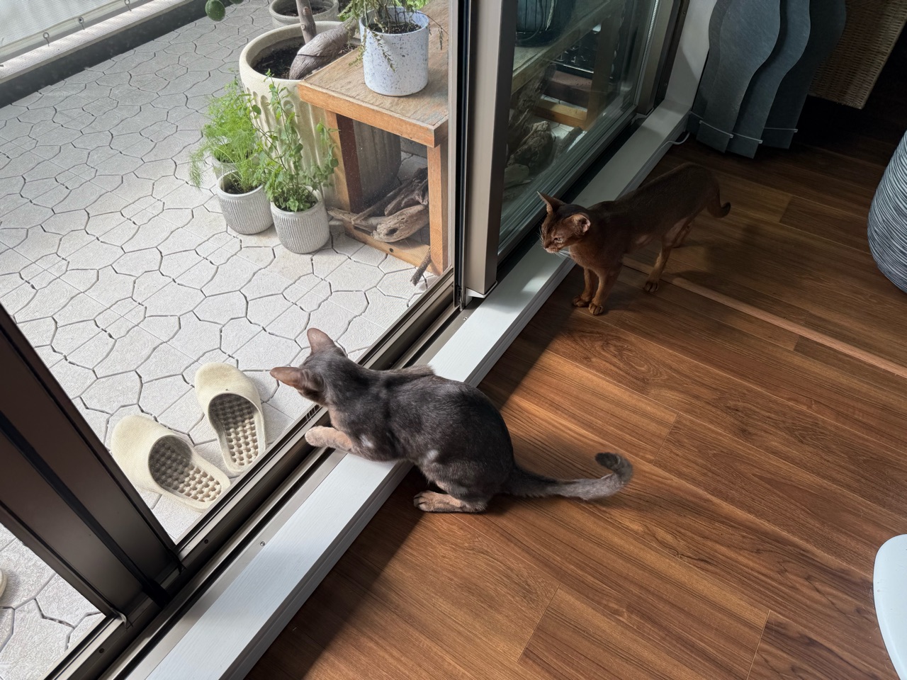りすは、お兄ちゃんの様子につられて窓際にきてるけど、虫さんのことはまだ見つけられてない(๑¯◡¯๑)
