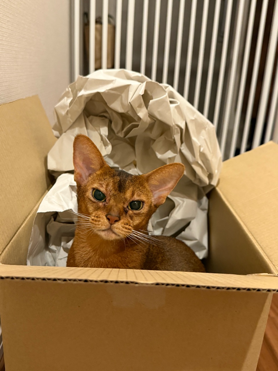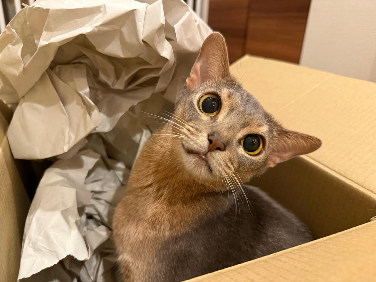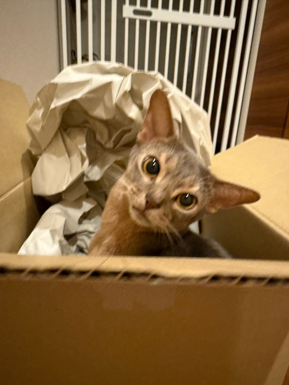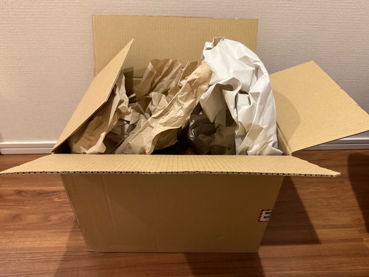 ダンボールの中の梱包材が動いてる…