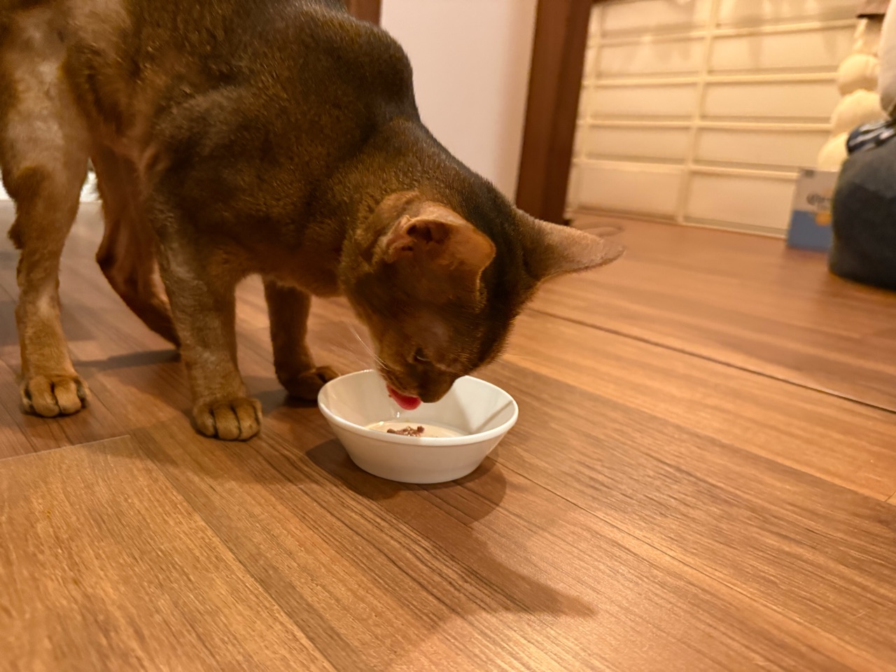 サプリの入ったおやつを美味しそうに食べている。
