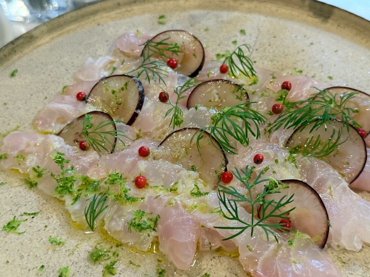 1尾で買った鯛で鯛しゃぶにした残りの柵をスライスしてカルパッチョにしました。