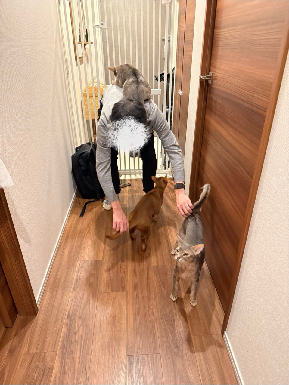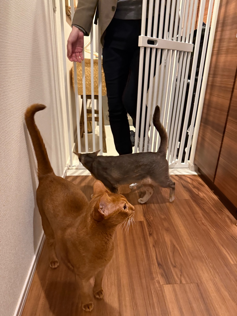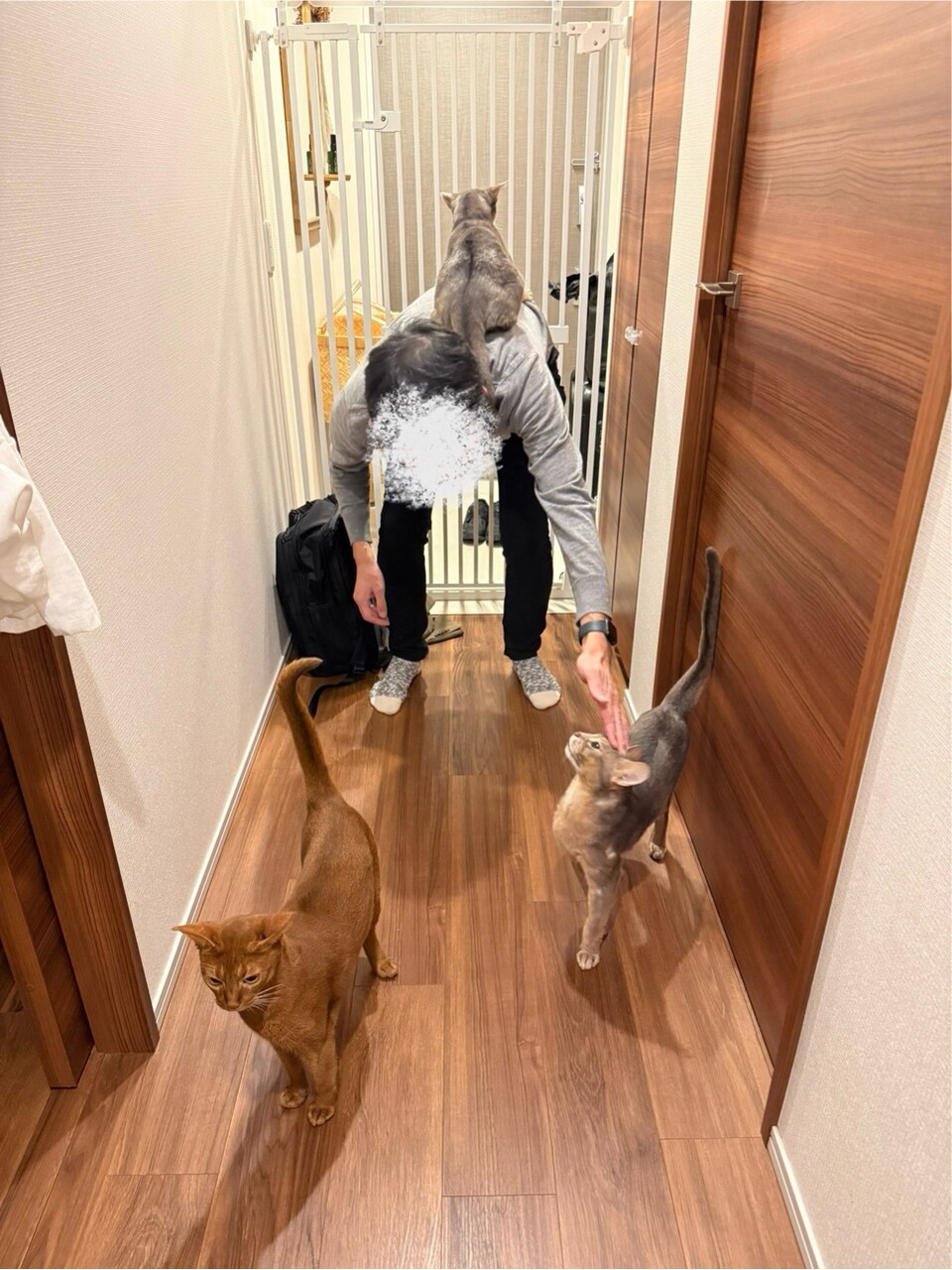 2025年10月19日 パパが帰ってきて、嬉MAXのニャンズ だんなさまが、8日間の出張から帰宅しました。猫たちが、玄関先に走って行った。久しぶりのパパの気配にざわつく猫たち。わか坊、嬉しくてスリスリしてる(*´ω`*)ただいまー。わかー、おりこうにしてたかな?久しぶりにパパに抱っこされて、嬉しいが爆発するわか坊♡アゴにスリスリゴンゴンして、おかえりの挨拶してました。\ぼくのパパ帰ってきたでち!/久々にわか坊をだっこして、デレデレデロデロのだんなさまでした(๑¯◡¯๑)とのひめにも取り囲まれて、なかなか前に進めない。\パパ?ぼくいい子にしてたよ!/\掻きすぎしてないよ!/そうかそうか、いい子だったね♡掻きすぎしてましたけどね( ¯ᒡ̱¯ )わか坊は、パパにベタ付けになってた。このままリビングまで中腰で移動。りすちゃんにもただいまのご挨拶に行ったけど、りすちゃんは飛んで行きました。なぜ…⁇ぼくちんも無事抱っこされて、嬉しそうでした♡今回、ドイツ、ポーランド、イタリアの3カ国に行ってたんですけど、それぞれの国のスーパーで食料品やお菓子をいっぱい買ってきてくれてました。ちなみに、ハイブランドは無しです(๑¯◡¯๑)おまけ。\次はぼくもご一緒するでち/\ここにちょうど入るでち/行く気満々じゃないか… 「├ とのひめりすわか」カテゴリの最新記事 < 前の記事次の記事 > コメント コメント一覧 (2) 1. ビビアン 2025年10月20日 07:11 8日ぶりのお出迎え、とのひめわかちゃんの喜びぶりが伝わってきます☺️ わかちゃんは嬉しすぎて背中乗っちゃったのね😂👍 りすたんは人見知りかな🤭💕 各国スーパーのお土産は、現地の方の暮らしが垣間見えて楽しそうですね✨ 0 jolijolidayo がしました 2. joli!joli! 2025年10月20日 10:57 >>1 オットは、猫たちに忘れられてなくてホッとしてました(๑¯◡¯๑) 猫たちがいつも通りで、私も嬉しかったです✨ りすは、野良ごっこが好きで🤣 こっちから近寄ると逃げるのに、自分からは寄ってきて、よく分からないけどかわいいです♡ お菓子や調味料がいっぱいの、KALDIみたいなお土産でした😂 0 jolijolidayo がしました コメントフォーム 名前 コメント 記事の評価 リセット リセット 顔 星 情報を記憶 コメントを投稿する