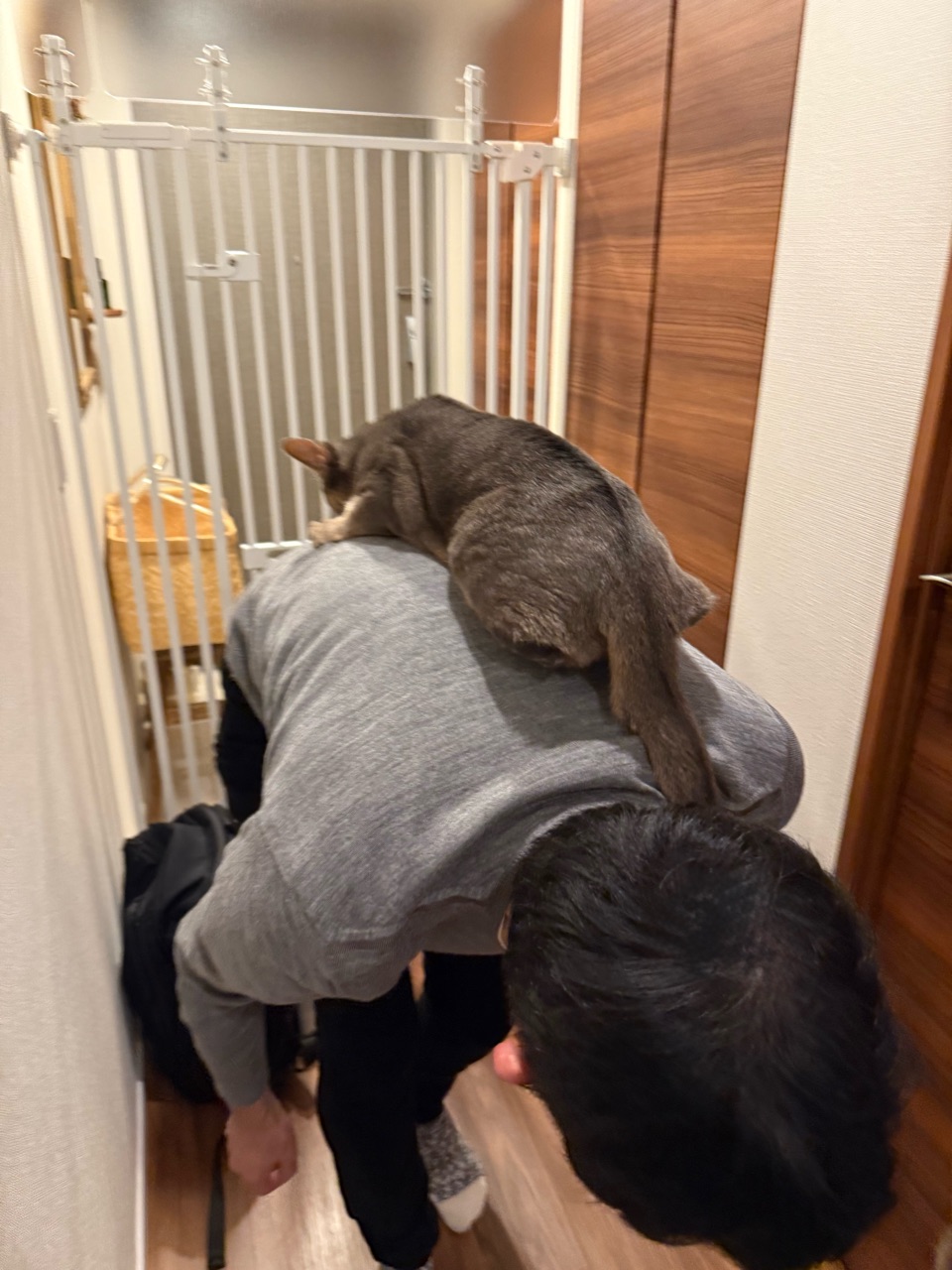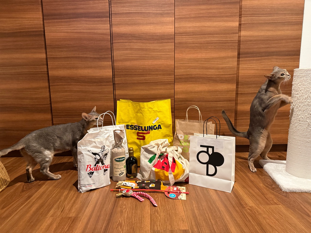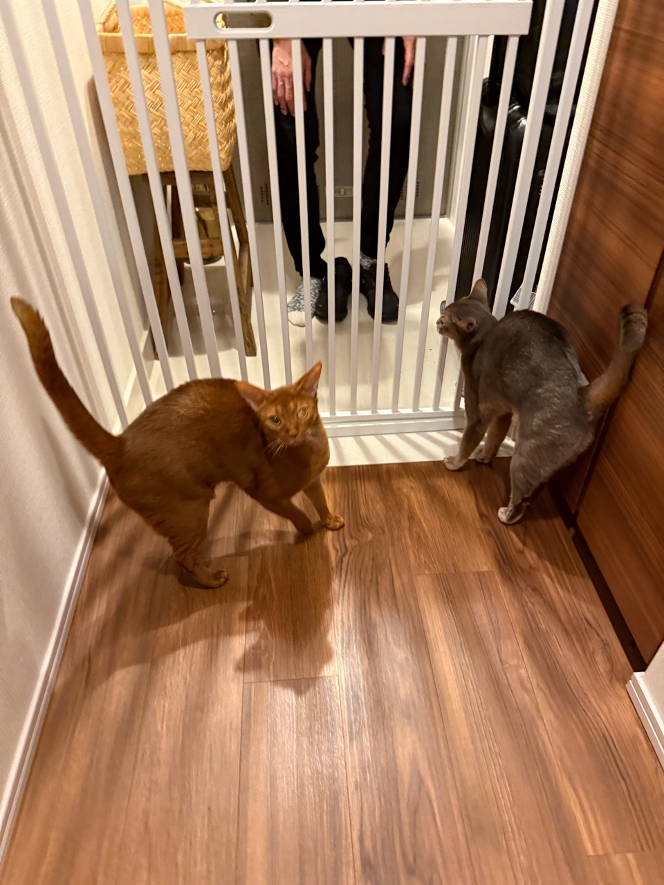 2025年10月19日 パパが帰ってきて、嬉MAXのニャンズ だんなさまが、8日間の出張から帰宅しました。猫たちが、玄関先に走って行った。久しぶりのパパの気配にざわつく猫たち。わか坊、嬉しくてスリスリしてる(*´ω`*)ただいまー。わかー、おりこうにしてたかな?久しぶりにパパに抱っこされて、嬉しいが爆発するわか坊♡アゴにスリスリゴンゴンして、おかえりの挨拶してました。\ぼくのパパ帰ってきたでち!/久々にわか坊をだっこして、デレデレデロデロのだんなさまでした(๑¯◡¯๑)とのひめにも取り囲まれて、なかなか前に進めない。\パパ?ぼくいい子にしてたよ!/\掻きすぎしてないよ!/そうかそうか、いい子だったね♡掻きすぎしてましたけどね( ¯ᒡ̱¯ )わか坊は、パパにベタ付けになってた。このままリビングまで中腰で移動。りすちゃんにもただいまのご挨拶に行ったけど、りすちゃんは飛んで行きました。なぜ…⁇ぼくちんも無事抱っこされて、嬉しそうでした♡今回、ドイツ、ポーランド、イタリアの3カ国に行ってたんですけど、それぞれの国のスーパーで食料品やお菓子をいっぱい買ってきてくれてました。ちなみに、ハイブランドは無しです(๑¯◡¯๑)おまけ。\次はぼくもご一緒するでち/\ここにちょうど入るでち/行く気満々じゃないか… 「├ とのひめりすわか」カテゴリの最新記事 < 前の記事次の記事 > コメント コメント一覧 (2) 1. ビビアン 2025年10月20日 07:11 8日ぶりのお出迎え、とのひめわかちゃんの喜びぶりが伝わってきます☺️ わかちゃんは嬉しすぎて背中乗っちゃったのね😂👍 りすたんは人見知りかな🤭💕 各国スーパーのお土産は、現地の方の暮らしが垣間見えて楽しそうですね✨ 0 jolijolidayo がしました 2. joli!joli! 2025年10月20日 10:57 >>1 オットは、猫たちに忘れられてなくてホッとしてました(๑¯◡¯๑) 猫たちがいつも通りで、私も嬉しかったです✨ りすは、野良ごっこが好きで🤣 こっちから近寄ると逃げるのに、自分からは寄ってきて、よく分からないけどかわいいです♡ お菓子や調味料がいっぱいの、KALDIみたいなお土産でした😂 0 jolijolidayo がしました コメントフォーム 名前 コメント 記事の評価 リセット リセット 顔 星 情報を記憶 コメントを投稿する