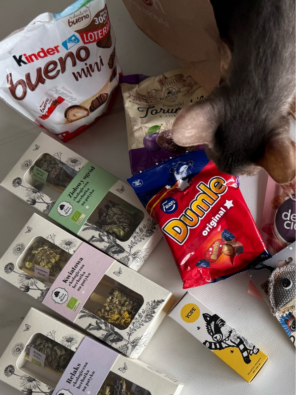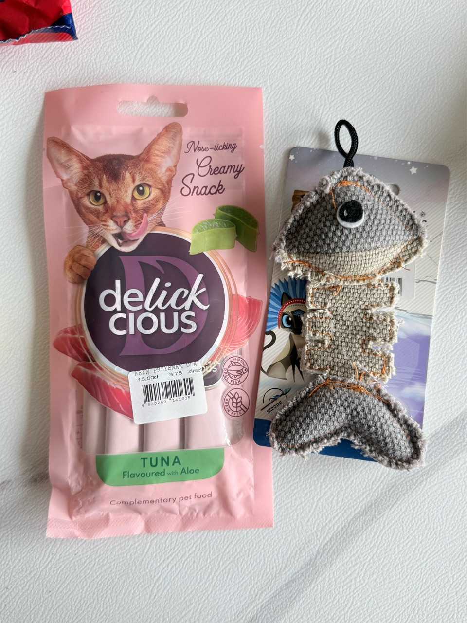 ひめちゃんに似てる!と、買ってきたオヤツと、お魚のおもちゃ。