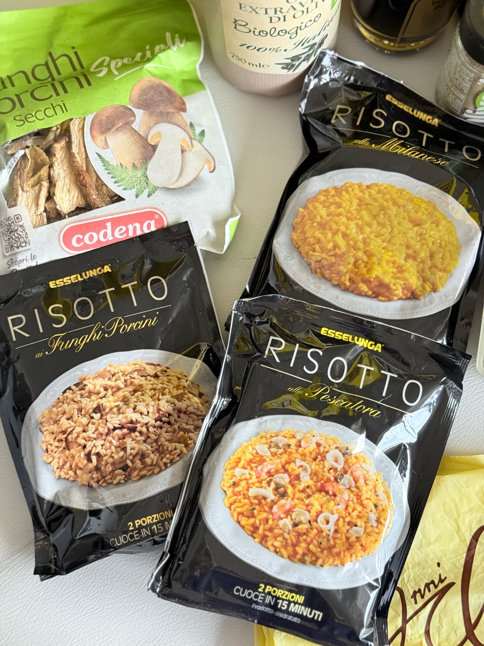 インスタントのリゾットと、乾燥キノコ。