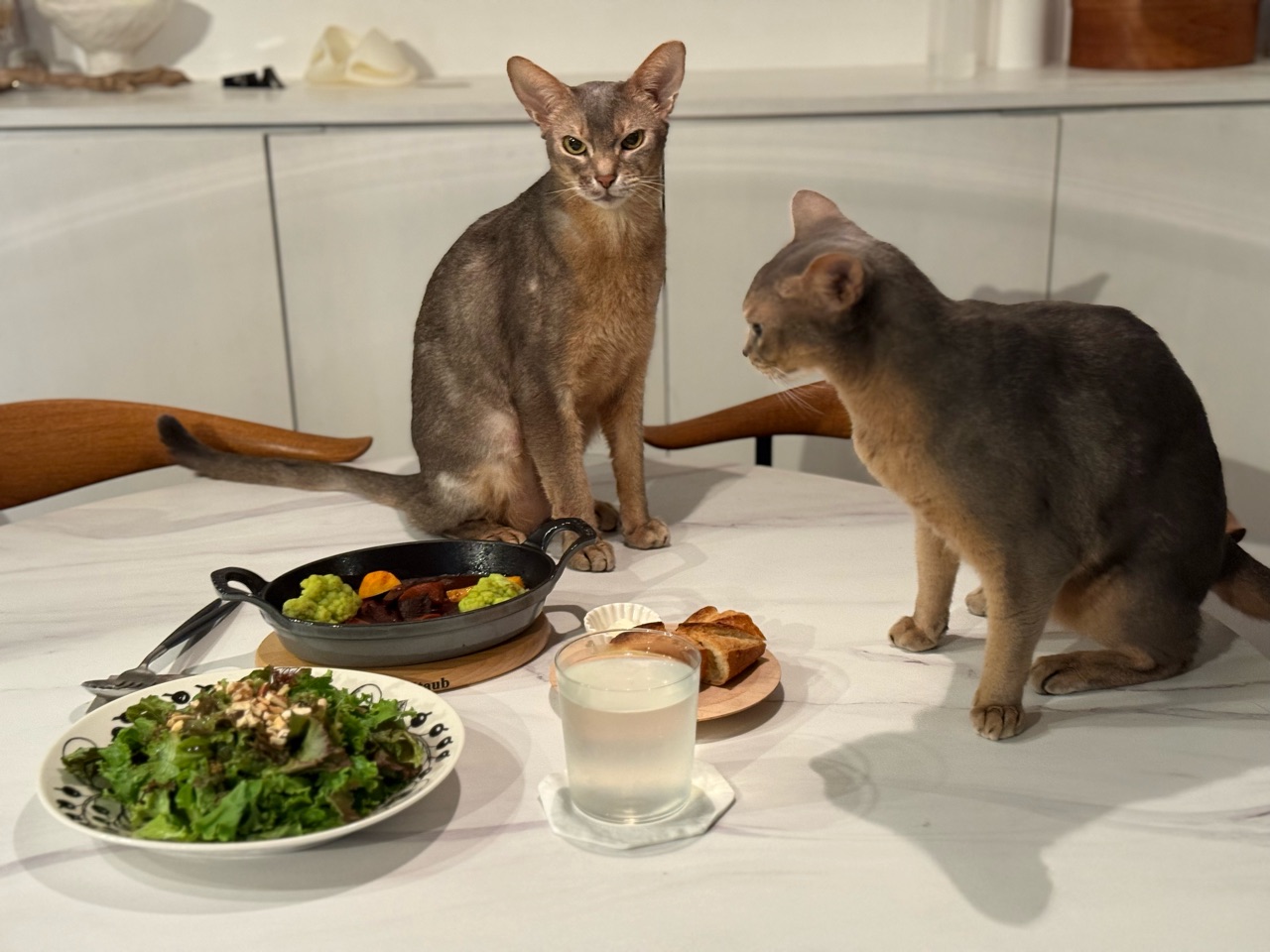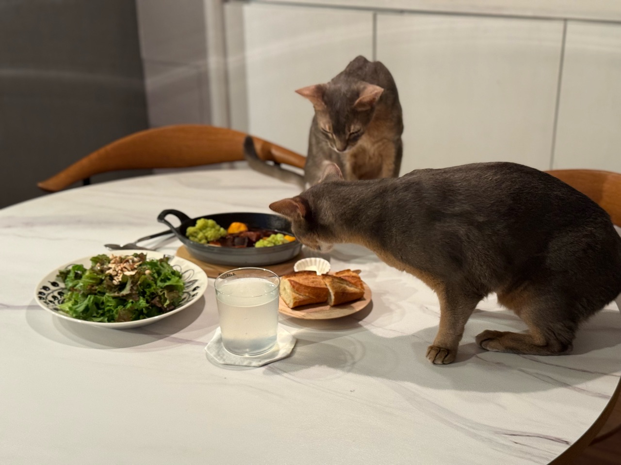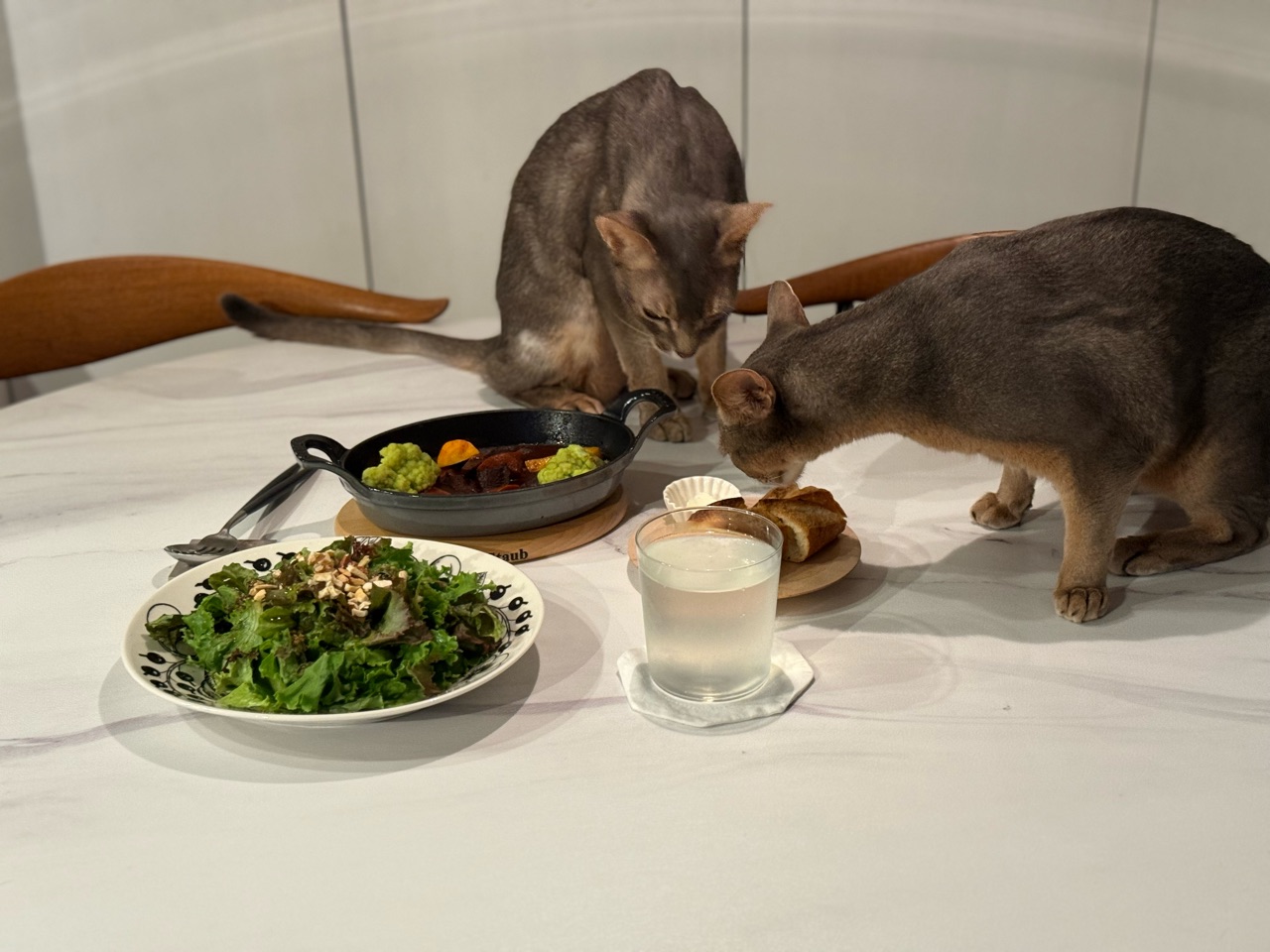その隙に、慌てて食事を済ませる飼い主です。