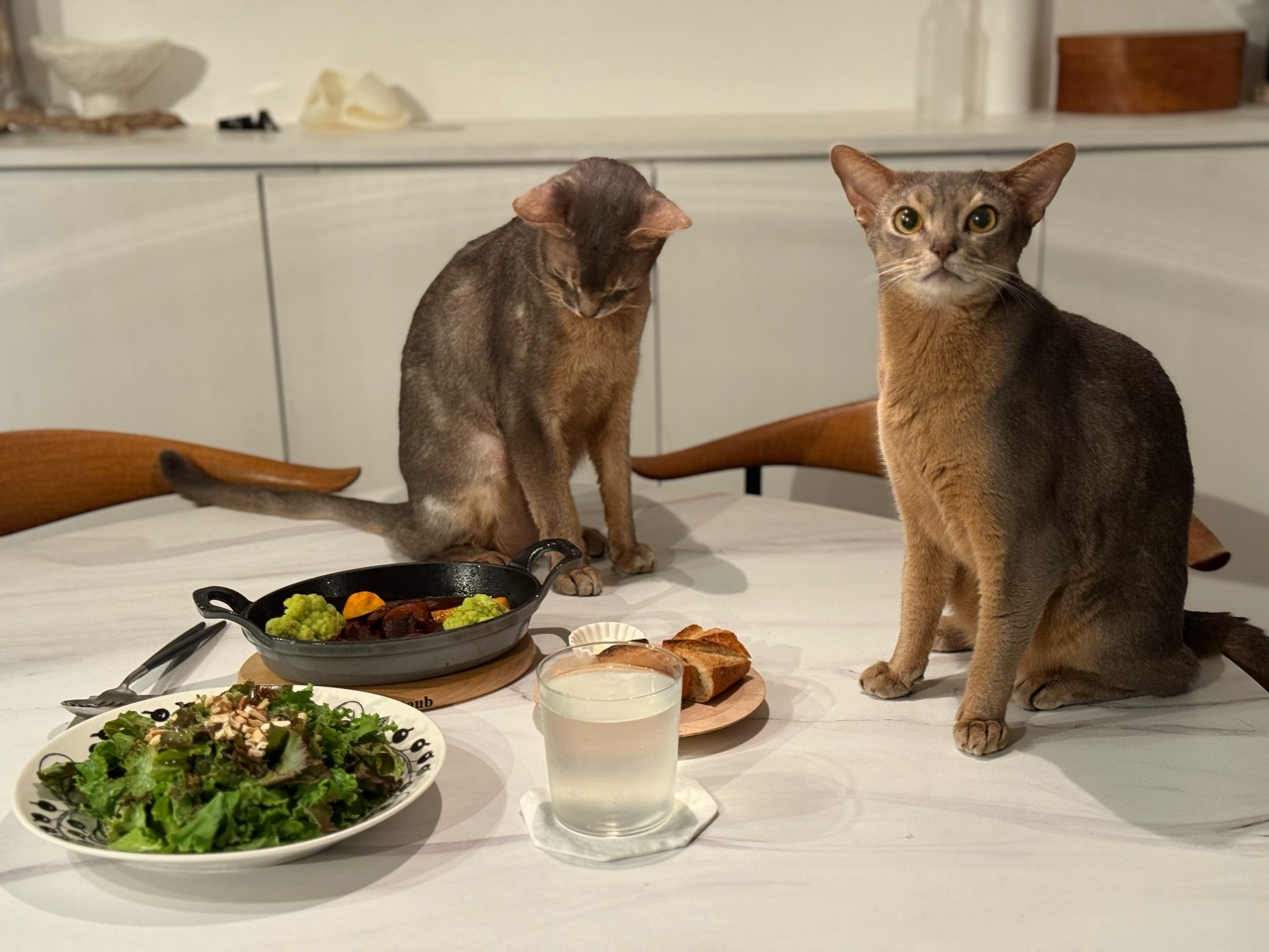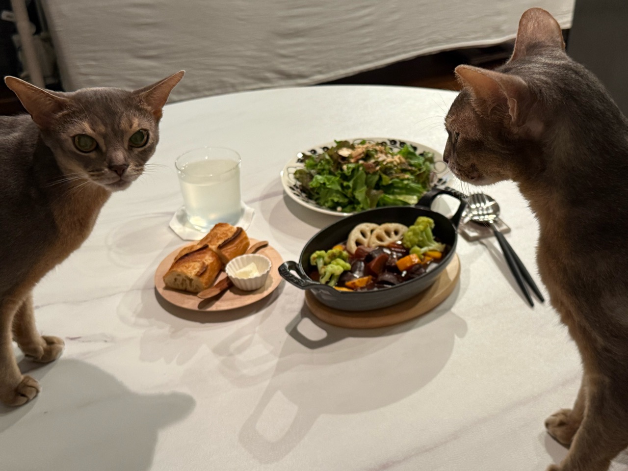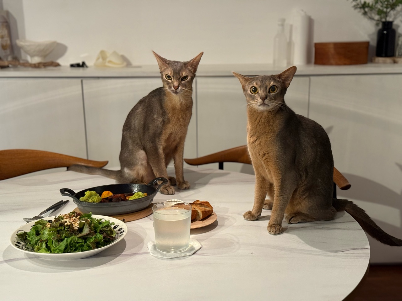 その隙に、慌てて食事を済ませる飼い主です。