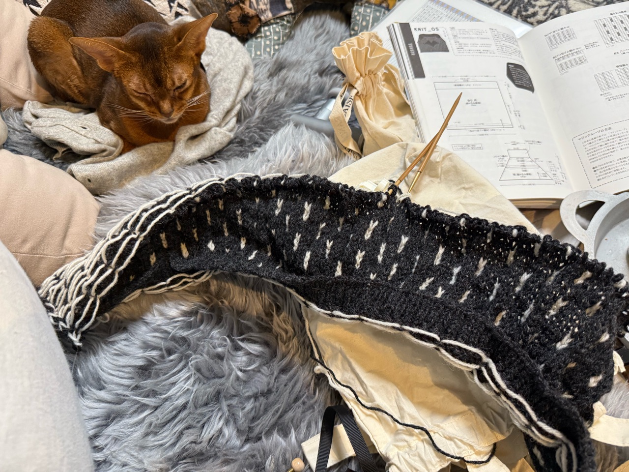2025年10月24日 大きさを見誤る猫 編み物を再開した。去年編みかけのセーターを編み始めた。けど、白の糸の裏側が引きつれて表面が波波になっていることに気づく…解いた( ߹ㅁ߹)てことで、一からやり直してます。切ない…その横で、編み物のお道具入れにしている袋をしげしげと眺めるぼくちん。おもむろに、入って行った。ちょ…小さすぎるって。ズボッと入って、スポット出てきた。流石に、入れないことを悟ったらしい。入る前に気づかないものか…⁇\この袋は、ぼくには小さすぎますね。フッ…/格好つけるところではないぞ(๑¯◡¯๑)毛糸をほどいてがっくりしてたところを、面白ぼくちんが癒してくれました(*´ω`*)猫って、ココロを緩めてくれるなぁ♡ 「├ との男」カテゴリの最新記事 < 前の記事次の記事 > コメント コメント一覧 (2) 1. ビビアン 2025年10月24日 08:29 さすが癒し王子🤭💕💕 0 jolijolidayo がしました 2. joli!joli! 2025年10月24日 09:57 >>1 毎日、家のあちこちで癒しを提供してくれます(*´ω`*) 0 jolijolidayo がしました コメントフォーム 名前 コメント 記事の評価 リセット リセット 顔 星 情報を記憶 コメントを投稿する