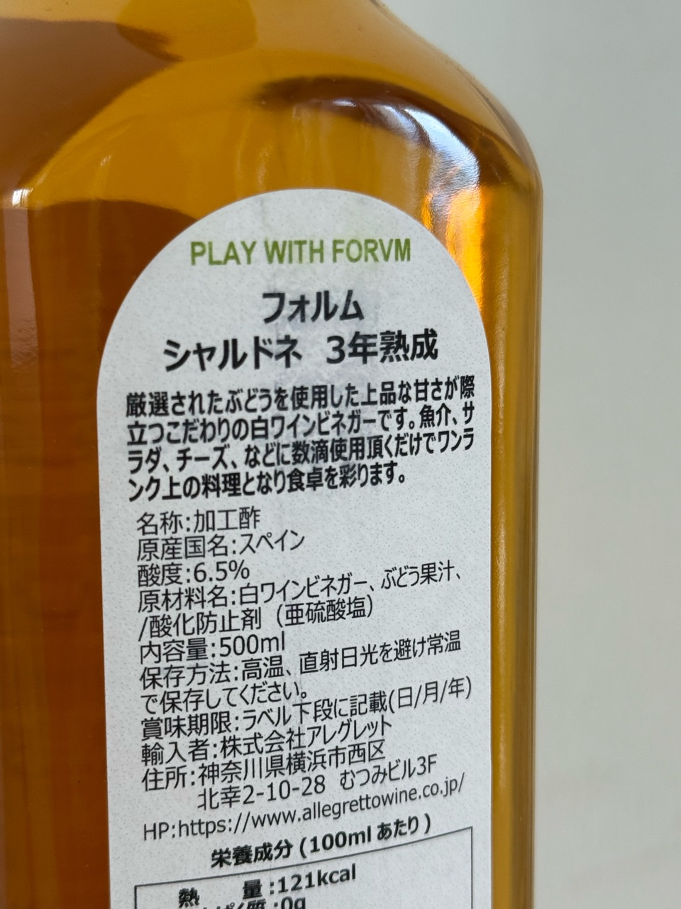 FORVMのワインビネガーをいただきました。