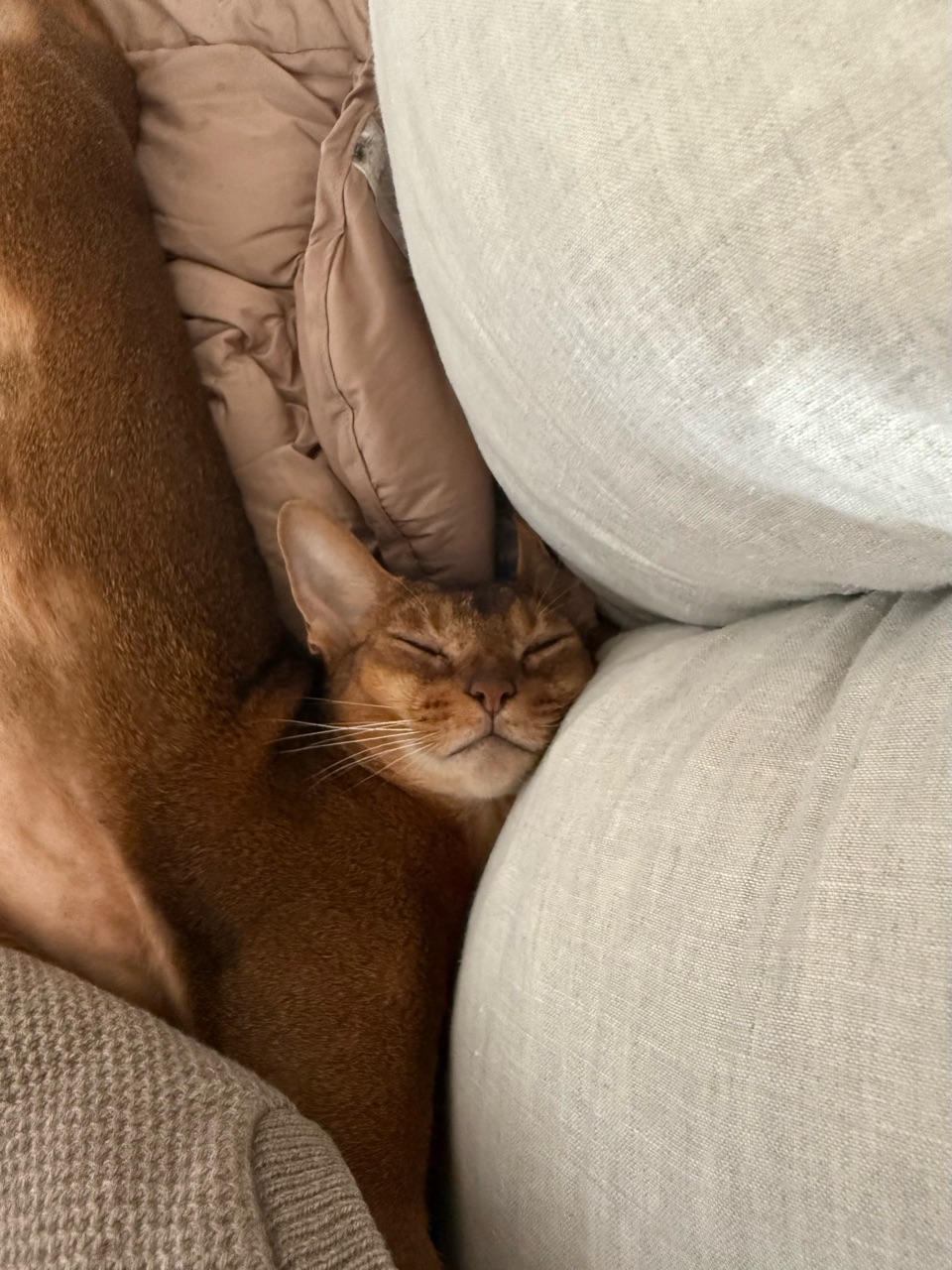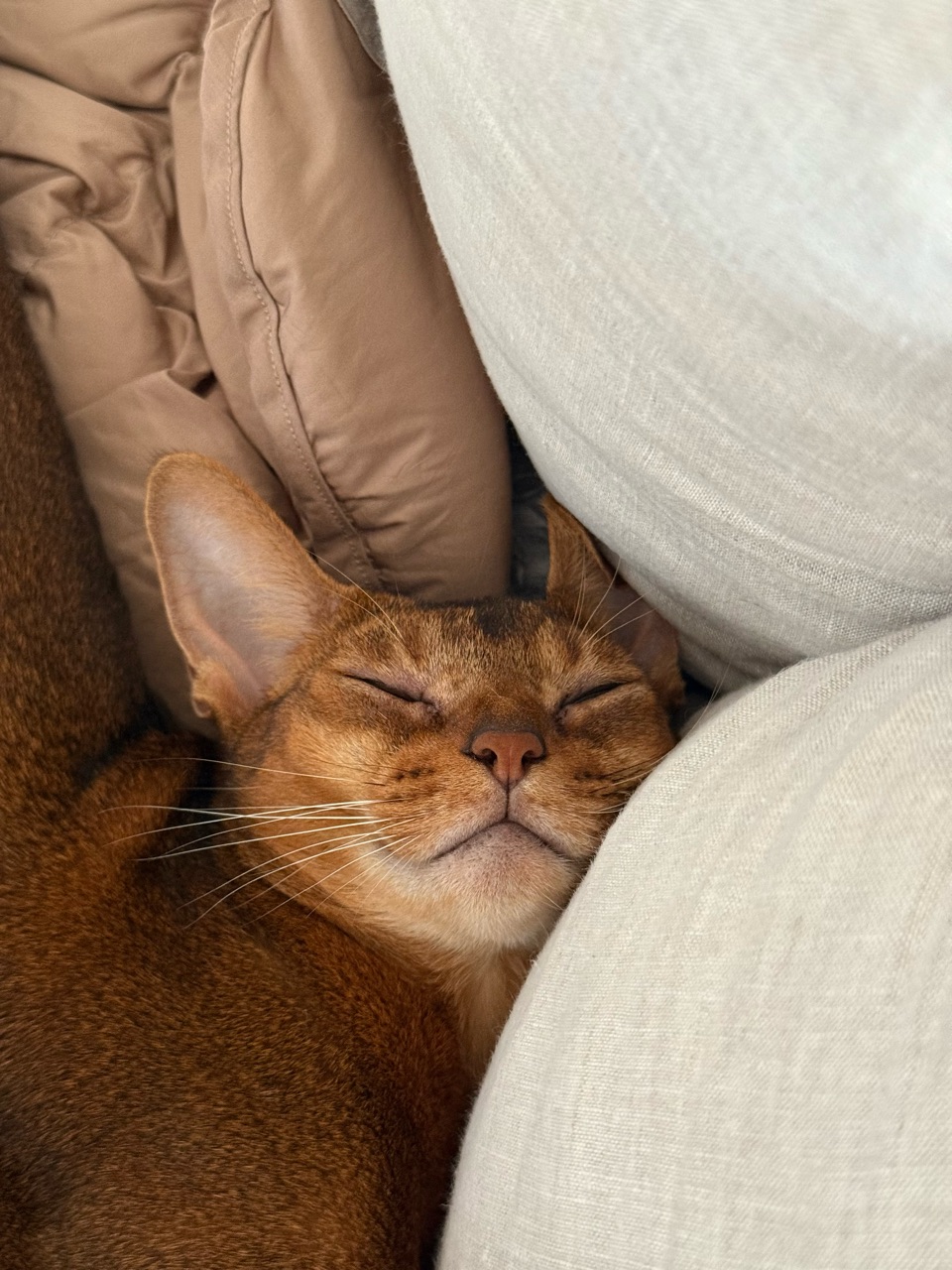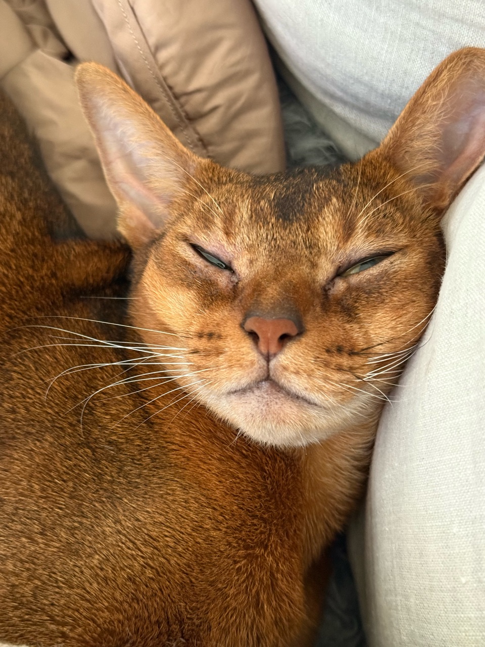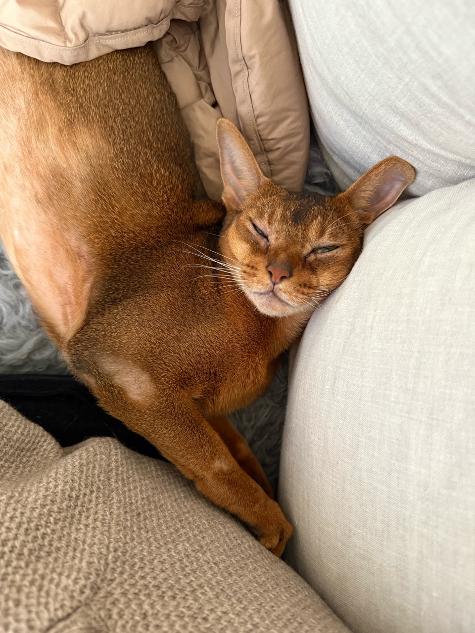 2025年10月25日 右のお尻グイグイされる ソファーに座っていると、右のお尻にギューっと圧がかかった。りすたんが熟睡して、伸びようとしていた。お目目腫れてるけど、かわいい(*´ω`*)それにしても、首の角度が毎度心配になる。これで、本ニャンはスヤスヤと気持ちよさそうに寝ているので問題ないのでしょうね。猫って柔らかいですね。羨ましい。やはり、すごい角度だ。わたしがこんな格好で寝たら、首しぬ… 「├ りす子」カテゴリの最新記事 < 前の記事次の記事 > コメント コメント一覧 (2) 1. みー 2025年10月25日 11:07 りすたん!首がえらいこっちゃではないですか!ほんと人間だと寝違えどころじゃ済まない角度ですね💦スヤスヤと気持ち良さそうで何よりです╰(*´︶`*)╯♡ 0 jolijolidayo がしました 2. joli!joli! 2025年10月25日 14:54 >>1 首が反対向きに付いてるみたいですよね😂 人間だったら、息がないですよね。 こんな格好でスヤスヤ寝ちゃうなんて、猫ってほんと柔軟で驚きですねー( ˙O˙ ) 0 jolijolidayo がしました コメントフォーム 名前 コメント 記事の評価 リセット リセット 顔 星 情報を記憶 コメントを投稿する