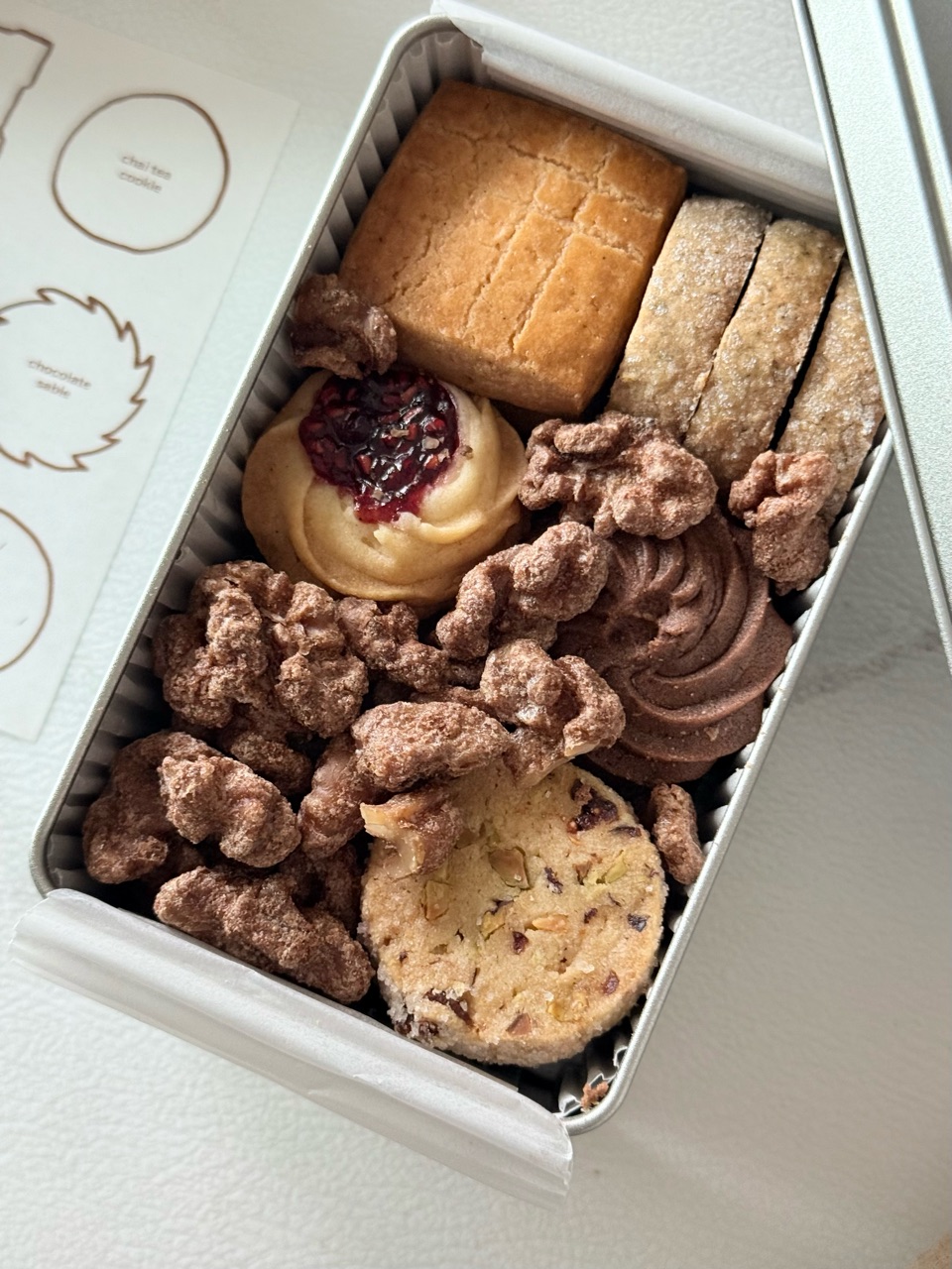 ミエルさんのクッキー缶、パティシエの手作りで美味しそう✨